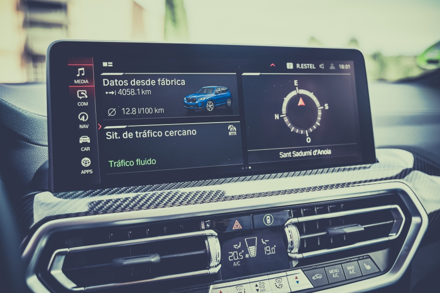 El cuadro de mandos digitalizado es la última versión del BMW Live Cockpit Professional ajustado para este modelo de forma específica que junto al Head-Up Display ofrecen la información necesaria para controlar a esta bestia. La pantalla de 12,3” táctil situada en la parte de la consola central controla el infotaiment del X3 M, siendo compatible con el sistema Apple Car Play y Android Auto, además de tener conectividad a internet y a los servicios Connected Drive de BMW.