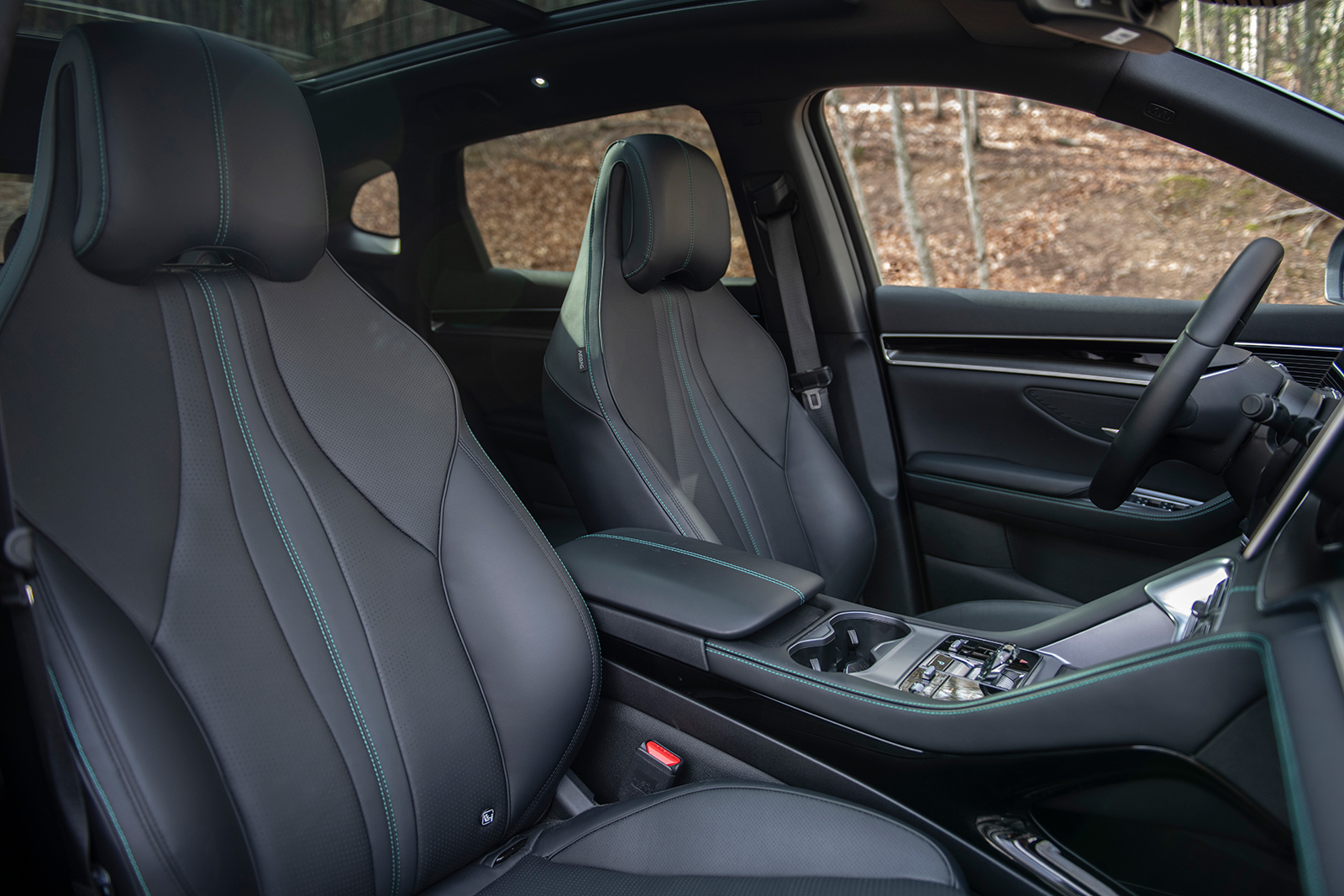 A nivel de equipamiento a parte de todos los ADAS que puedas imaginar encontramos control de tracción, cámaras visión 360º, faros LED, acceso sin llave, asientos con ajuste eléctrico y calefactados, climatización por bomba de calor, purificador de aire, tapicería de cuero vegano, cargador inalámbrico para smartphone, techo panorámico, equipo de sonido Infinity, control de descenso en pendientes o los servicios remotos para actualizaciones entre otros muchos elementos.