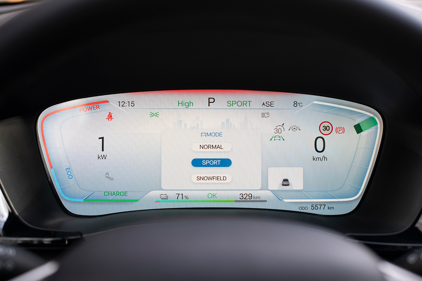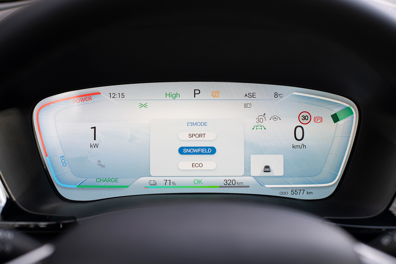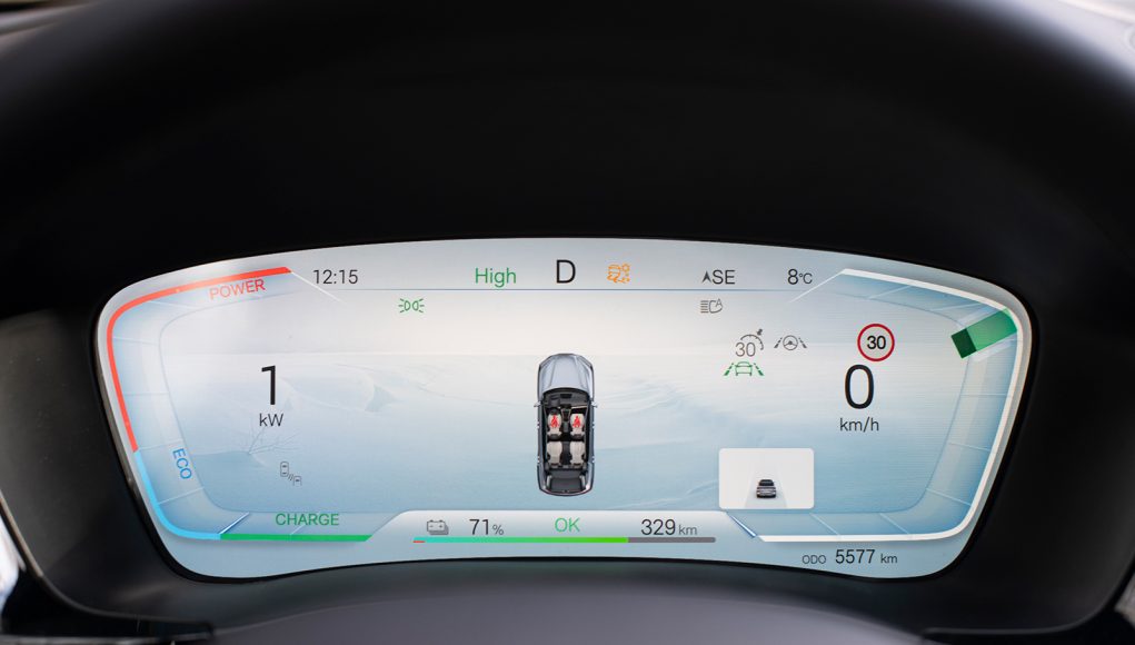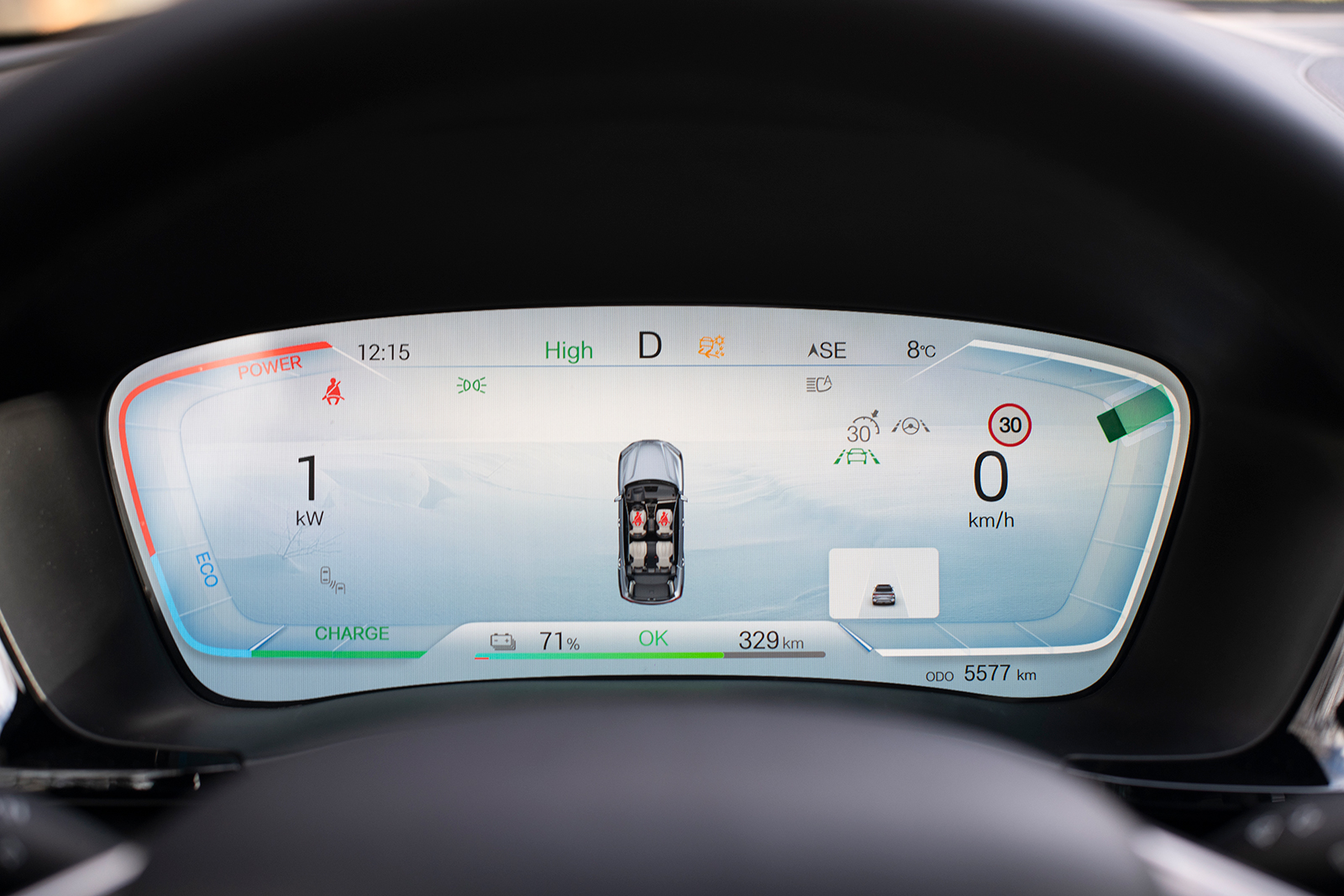 Tras el volante encontramos un cuadro de instrumentos digital de 12,3″ que ofrece niveles de personalización por software OTA y visualiza parámetros en tiempo real –consumo instantáneo, distribución de par y estado térmico– con claridad, aunque la estética de sus gráficos se percibe muy conservadora, lejos de las grafías de sus más directos competidores.