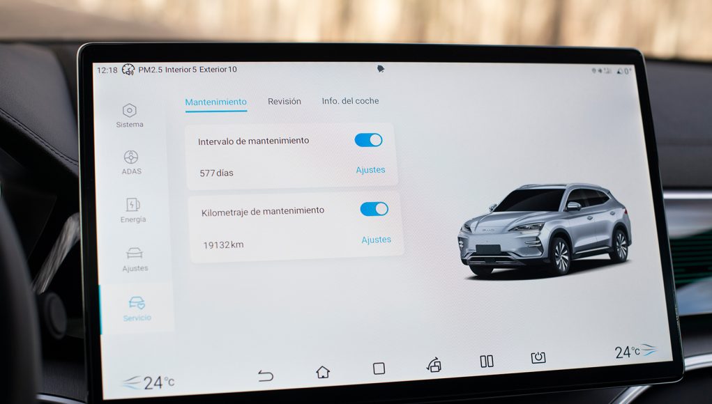 Desde el teléfono móvil y haciendo uso de la aplicación de BYD se pueden controlar algunas funciones del vehículo, como por ejemplo abrir y cerrar las puertas, cerrar las ventanillas en caso de estar abiertas o accionar el climatizador o la calefacción entre otras funciones. También puedes comprobar el tiempo de carga restante y la autonomía que resta, o a través de la tecnología NFC, se pueden abrir y cerrar las puertas.