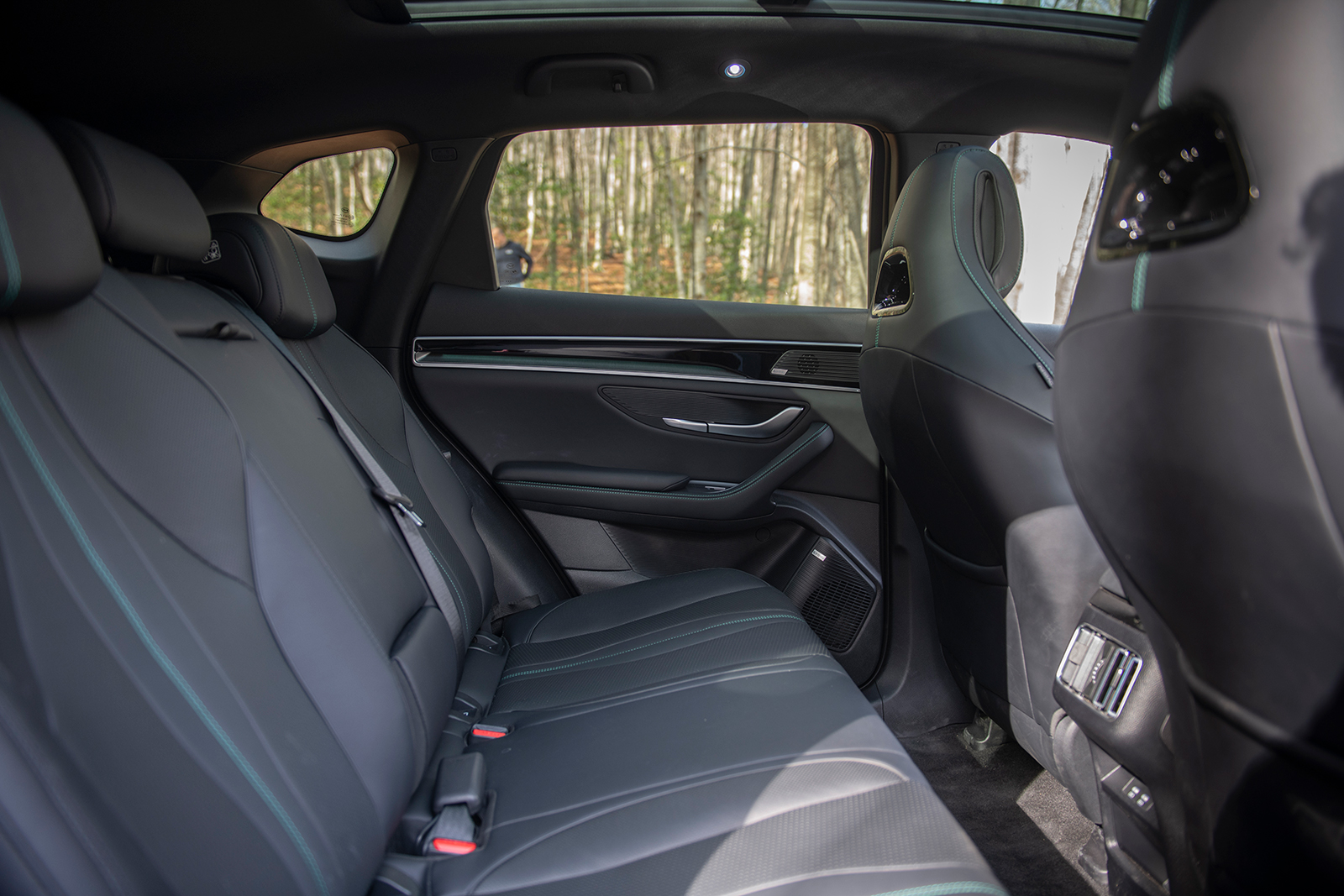Las plazas traseras destacan por su habitabilidad: puertas con apertura de amplio ángulo y una batalla de 2,77 metros favorecen espacio para extremidades y cabeza en ocupantes de hasta 2 metros de altura. El piso completamente plano, sin túnel de transmisión, facilita la colocación de pies y mejora el confort dinámico. Por su parte el maletero ofrece un volumen base de 552 litros, ampliable hasta 1 440 litros tras abatir los respaldos con accionamiento remoto. Se aprecia la versatilidad de la cota de carga, si bien se echa en falta un compartimento delantero específico para alojar el cableado de carga.