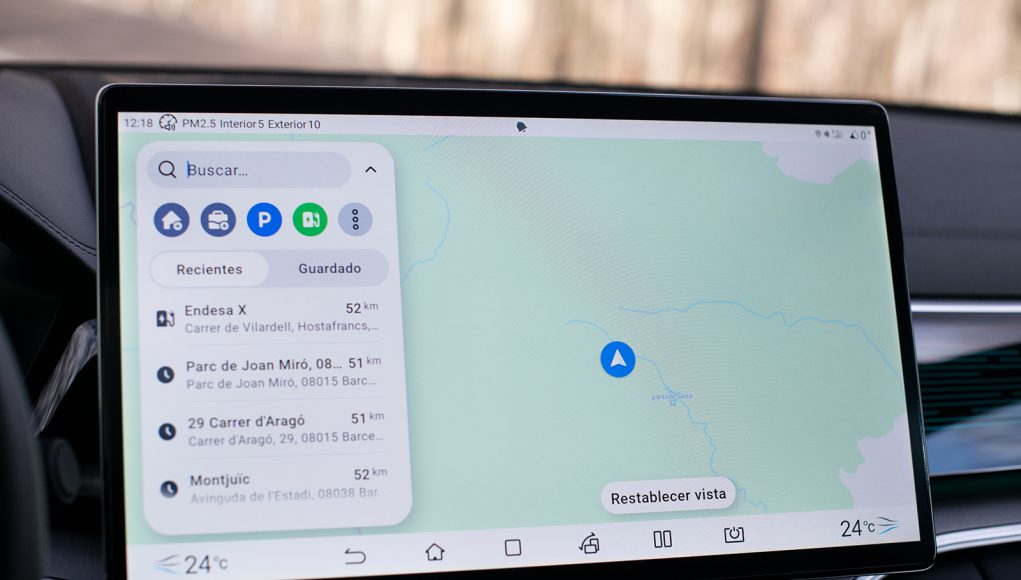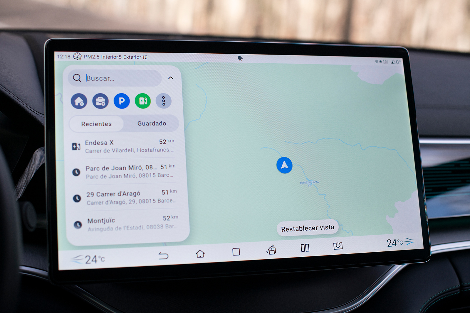 Los asientos son realmente cómodos y su configuración más tirando hacia la deportividad garantizan un buen agarre en todas las situaciones de conducción. Son regulables eléctricamente en seis ejes, con función calefactable y ventilada. El volante, de sección achatada, integra pulsadores físicos para control de crucero adaptativo y sistemas ADAS, aportando sensación de robustez y usabilidad.