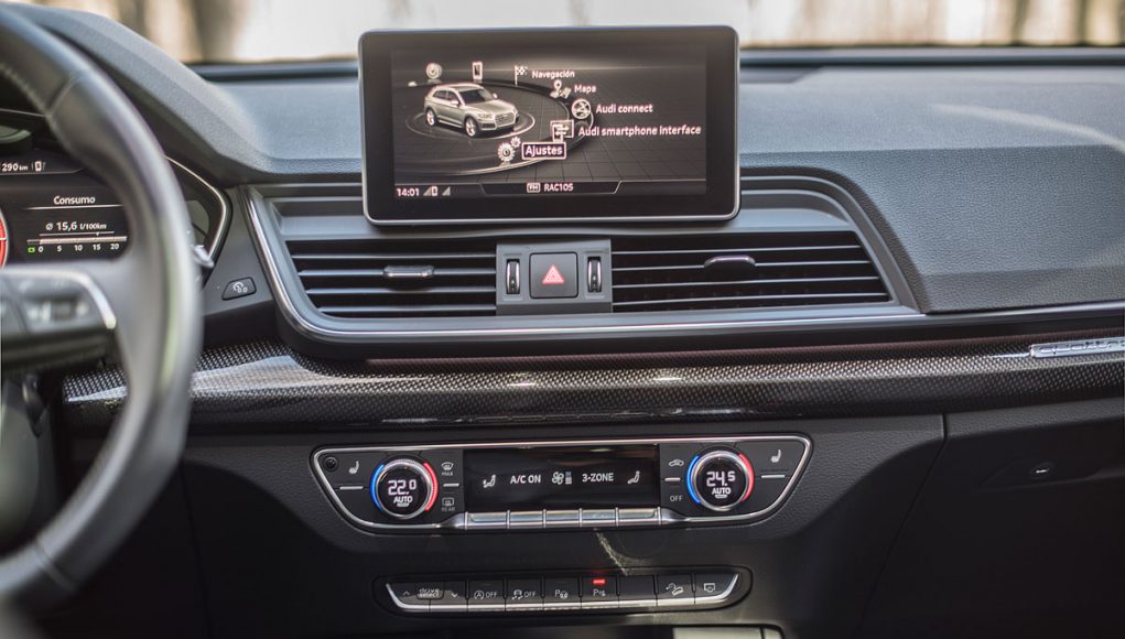 Si jugamos al juego de las 7 diferencias, quizás sean estas las que encontremos en el habitáculo de ambos modelos, pues son muy parecidos. Tan solo encontramos una disposición diferente en la pantalla del sistema de infoentretenimiento, así como de la consola central, el hueco que hay bajo los mandos del climatizador y el mando del MMI, que en el caso del Audi SQ5 (foto derecha) dispone de un tracpad.