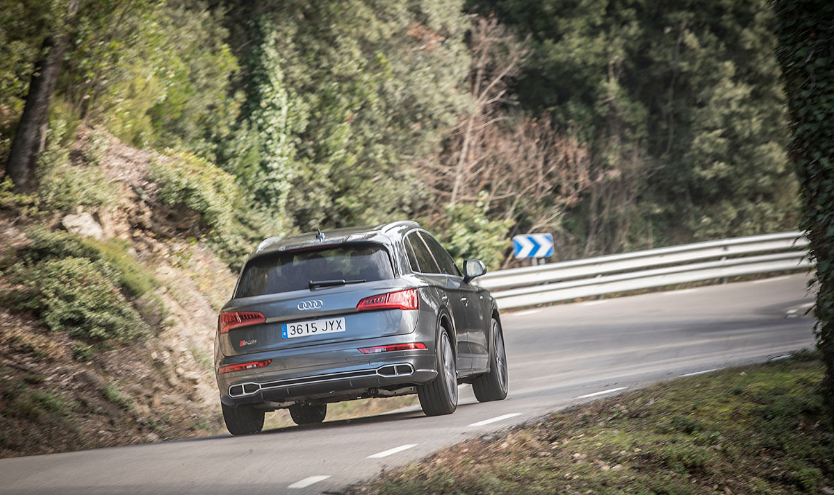 Elementos como el torque Vectoring son indispensables a la hora de trazar curvas, sobre todo con el SQ5, donde las inercias se notan algo más por el incremento de peso, así como por su volumen. Este sistema lo que hace es frenar la rueda que se encuentra en el interior de la curva para evitar en la medida de lo posible que se tienda al subviraje.