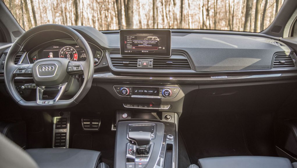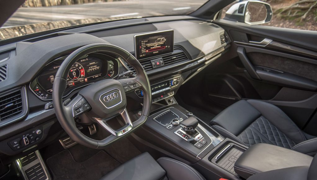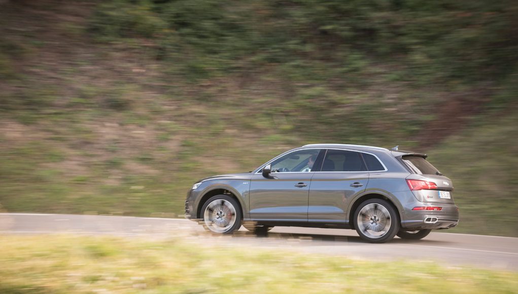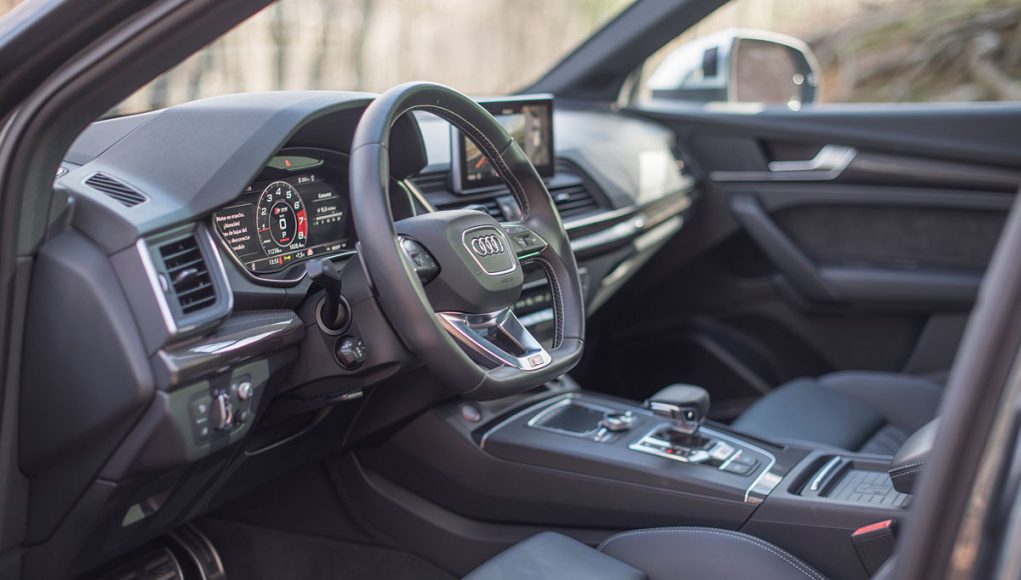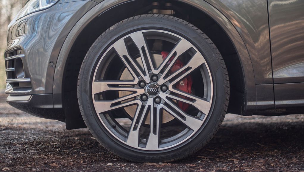Para el calzado, el SQ5 disponía de unas llantas de 21″ (opcionales) calzadas con neumáticos en medidas 255/40/21 y el S4 con unas llantas de 19″ con neumáticos 245/35/19. Los frenos de discos sobredimensionados de 350 mm delante y 330 para el tren trasero, cumplen con su cometido a la perfección, ya que no solo detienen con contundencia, sino que además se muestran bastante infatigables en cualquier circunstancia de conducción, incluso sometiéndolos a frenadas constantes en un puerto de montaña.
