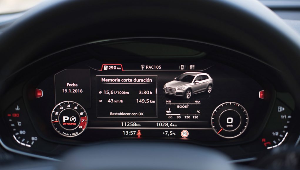 En el caso del SQ5, además de la dirección dinámica deportiva y la suspensión adaptativa encontramos el diferencial autoblocante para el eje trasero de forma opcional igual que la suspensión neumática adaptativa, ideal claro está para el uso offroad que le podemos dar a este SUV, que dispone de dos modos de conducción específicos en este sentido, Allroad y lift/offroad, dentro del Dynamic Select, donde encontramos además cuatro modos comunes, como son el Comfort, auto, individual y Dynamic.