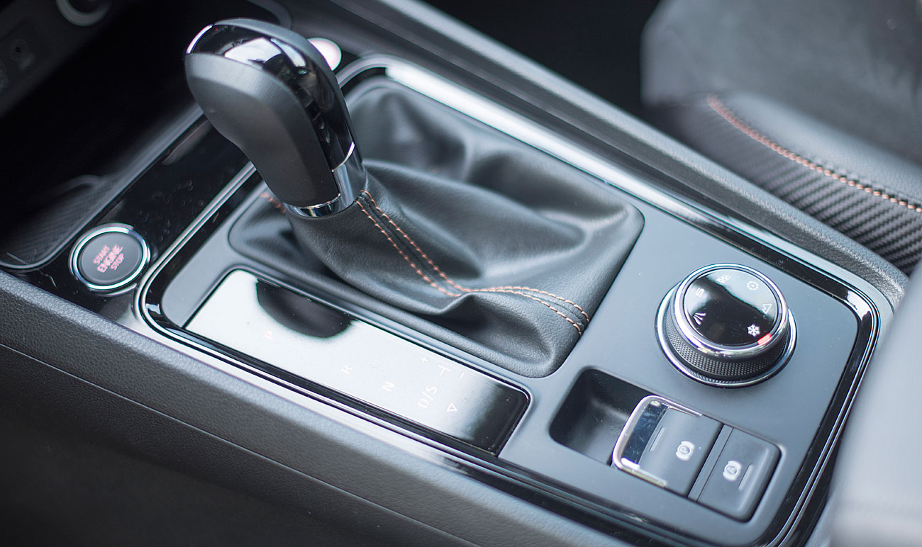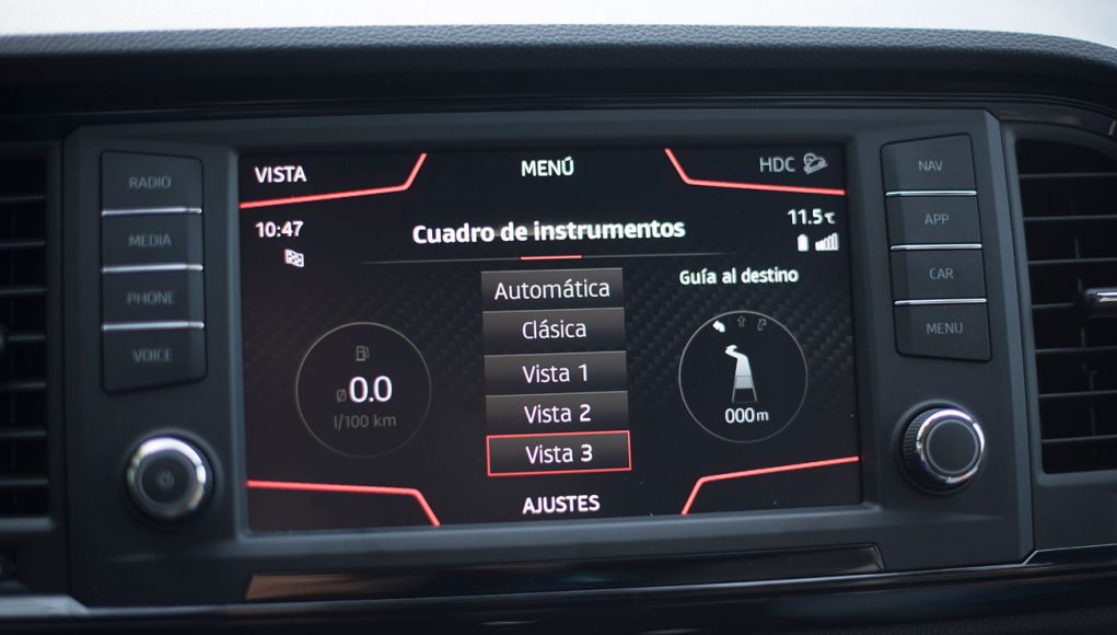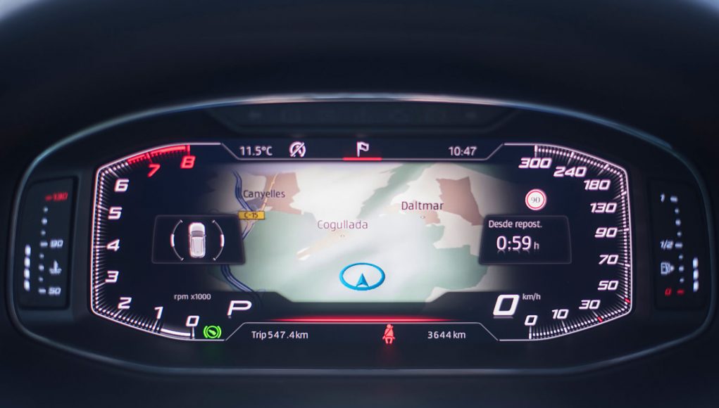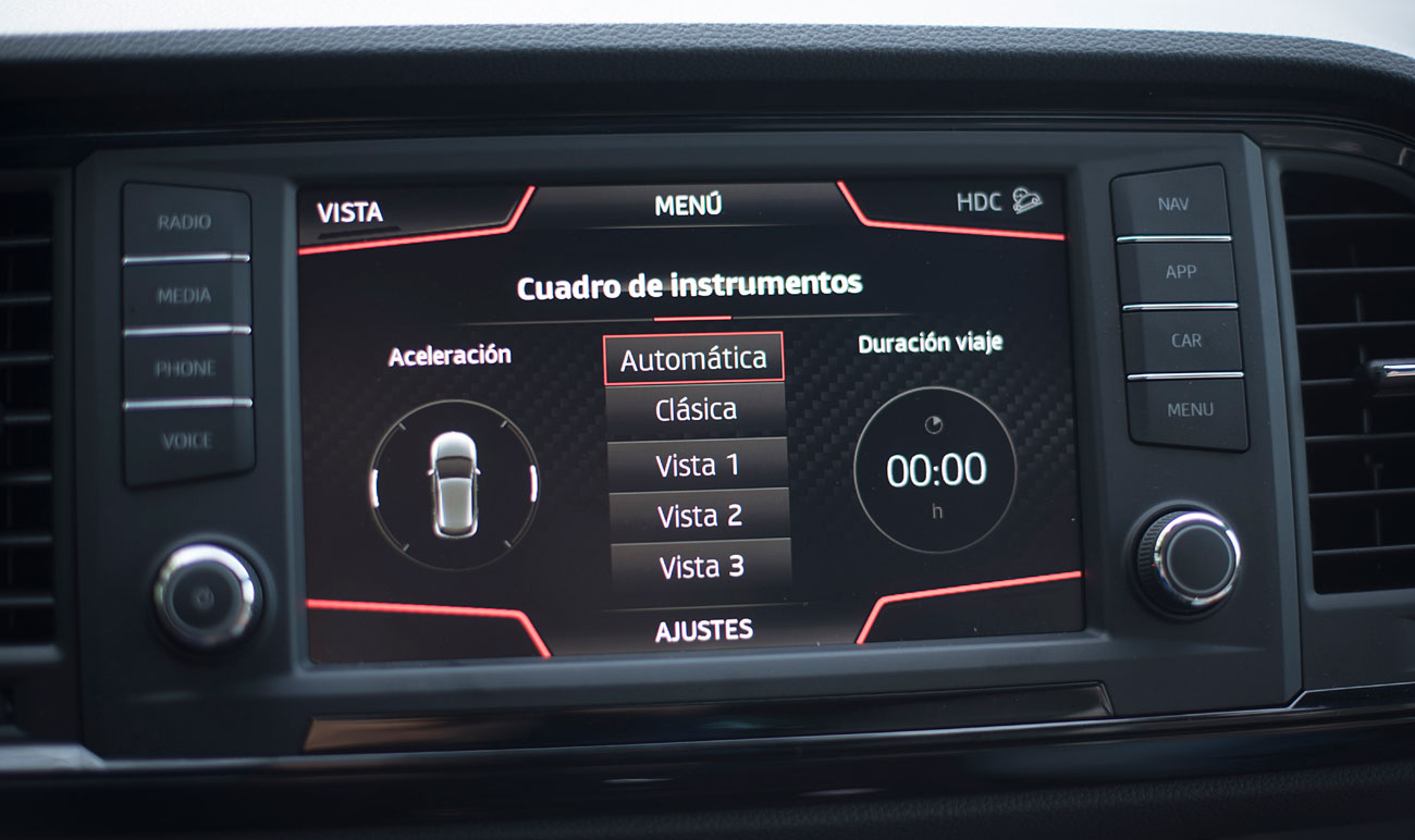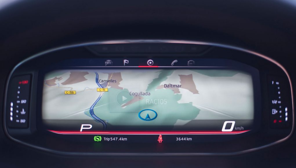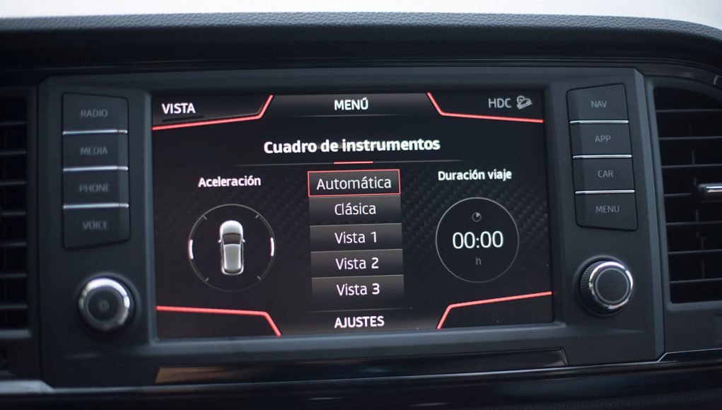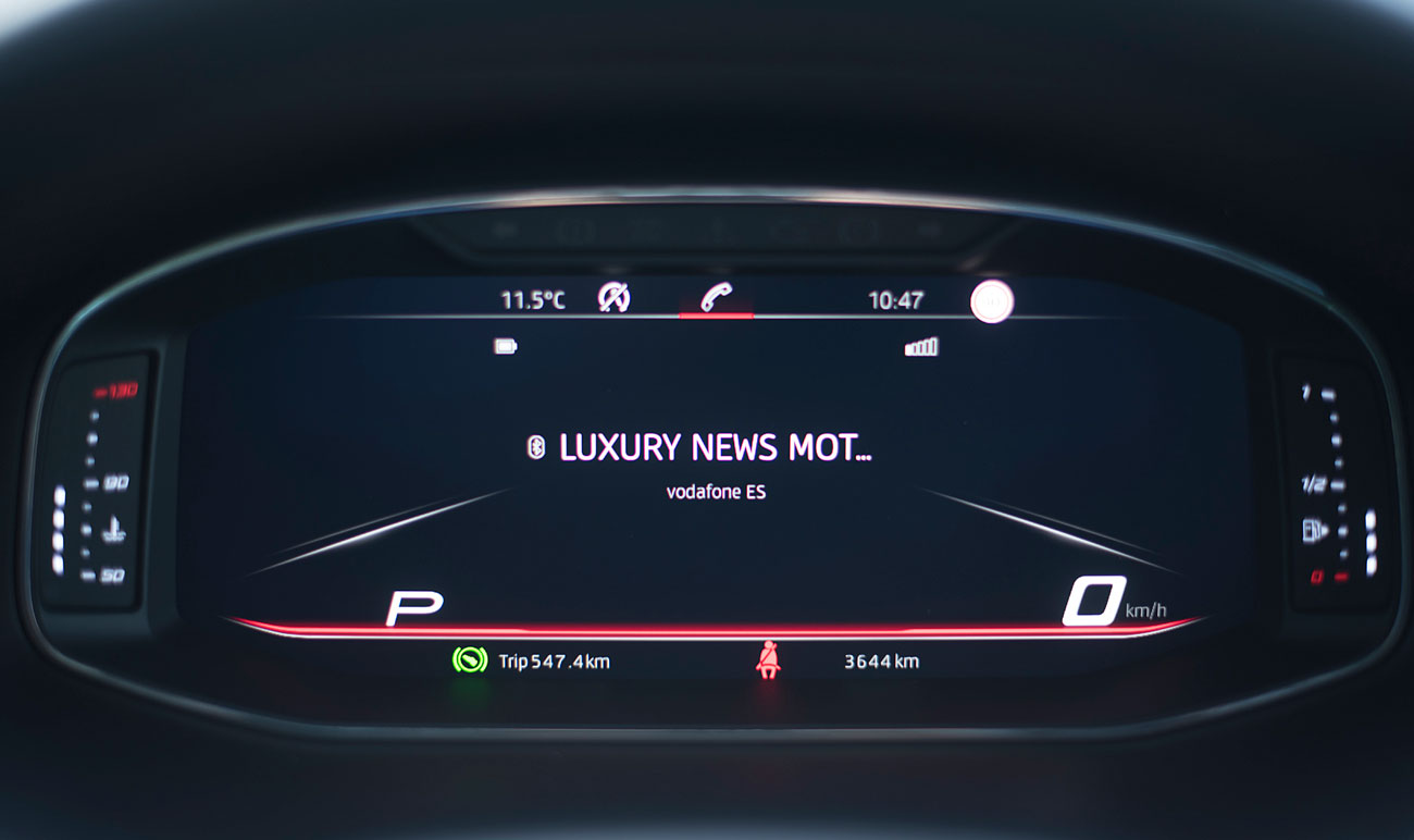 El volante deportivo, dispone de la parte inferior achatada, e integra las levas para el manejo del cambio de forma secuencial. Tras este, encontramos el Digital Cockpit de 10”, que ya habíamos visto en Ateca, pero que en este modelo cuenta con unas grafías propias que enfatizan más si cabe su enfoque deportivo y que es totalmente personalizable por el conductor.