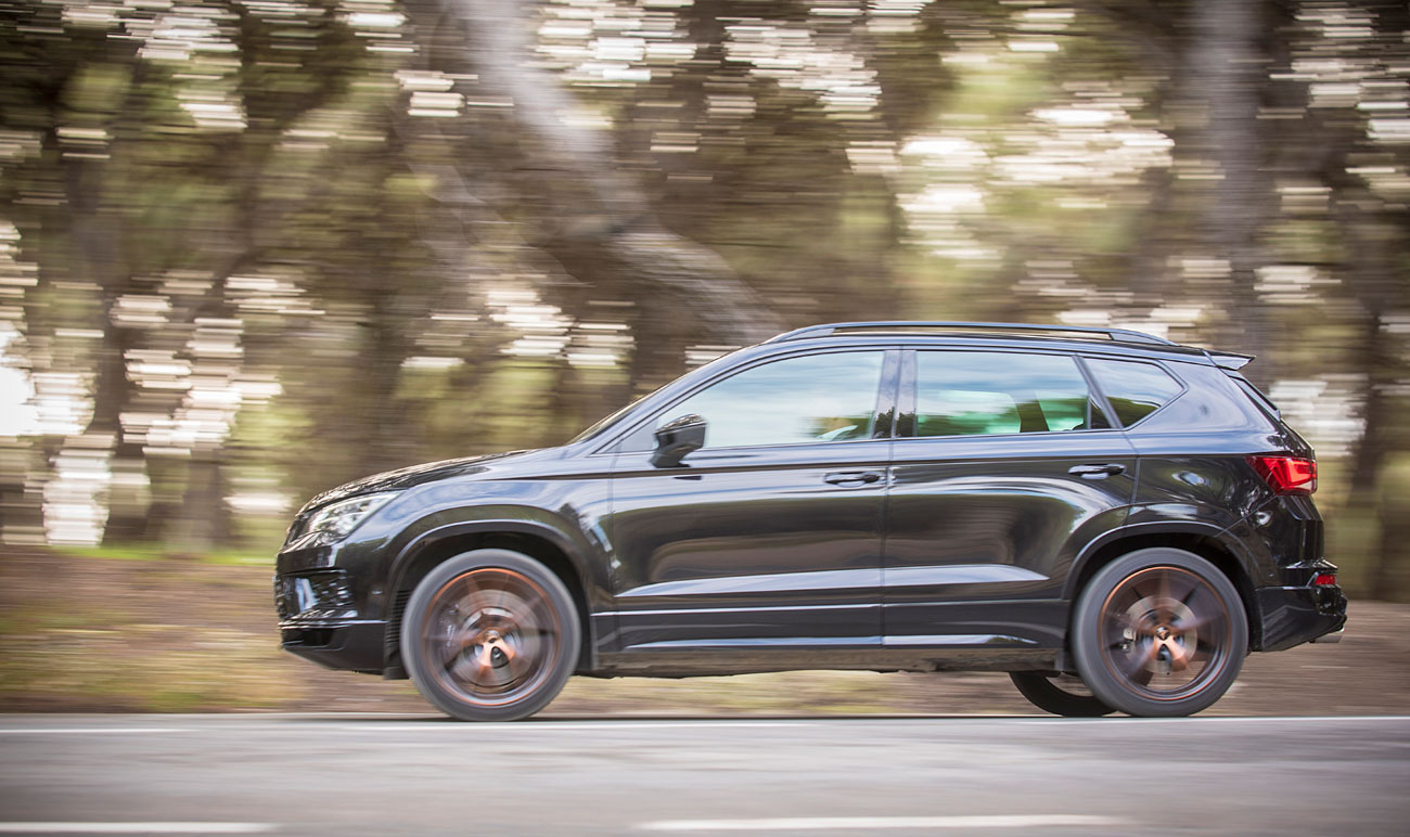El nuevo Cupra Ateca mantiene las mismas líneas y dimensiones del Ateca convencional, es decir 4,36 metros de largo, 1,84 de ancho, 1,61 de alto y una batalla de 2,63 metros, pero luce una estética exterior con multitud de detalles claramente deportivos que lo identifican como a un deportivo en toda regla. El logotipo de la marca, la parrilla en forma de nido de abeja, la inscripción Cupra en la parrilla inferior y el color negro brillante del conjunto, así como las preciosas llantas de 19” en el mismo color cobre del logo, son algunos de los detalles que delatan que esto no es un simple Ateca.