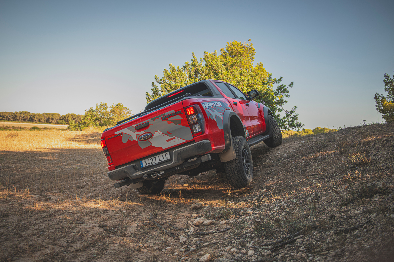 Este motor empuja muy bien desde bajas vueltas, y el par motor de 500 Nm son más que suficientes para mover con muchísima soltura a las 2,6 toneladas de lastre en cualquier escenario. Es sorprendente ver como en subidas con más de un 25% de inclinación no se le atragantan al Raptor, incluso sin tener que conectar la tracción 4H el coche empuja e intenta escalar lo que le pongas por delante.