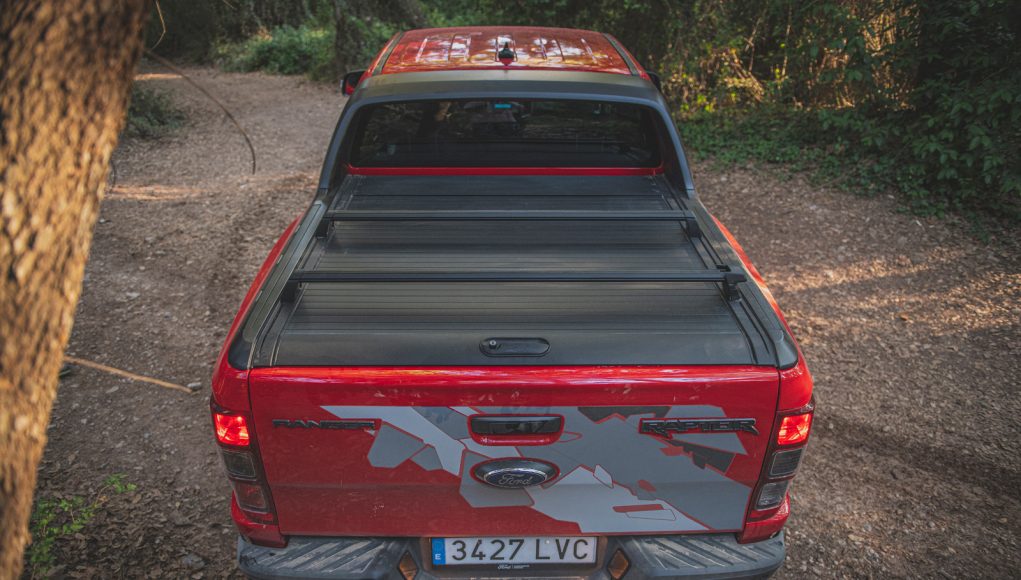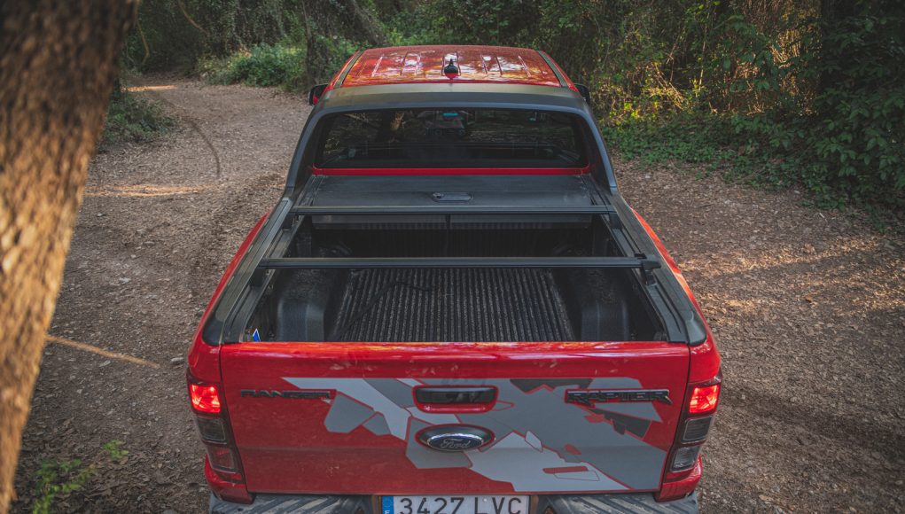 Sus medidas lo dicen todo; 5,4 metros de largo, con una anchura de 1,83 metros y 1,83 de alto, siendo casi 20 cm más ancha que una Ford Ranger convencional. La estampa que ofrece es impresionante gracias a la altura libre del suelo, así como por detalles como los pasos de rueda ensanchados, el poderoso frontal donde corona una parrilla con el logo de la marca, así como por el conjunto de pegatinas con la denominación del modelo que llaman mucho la atención.