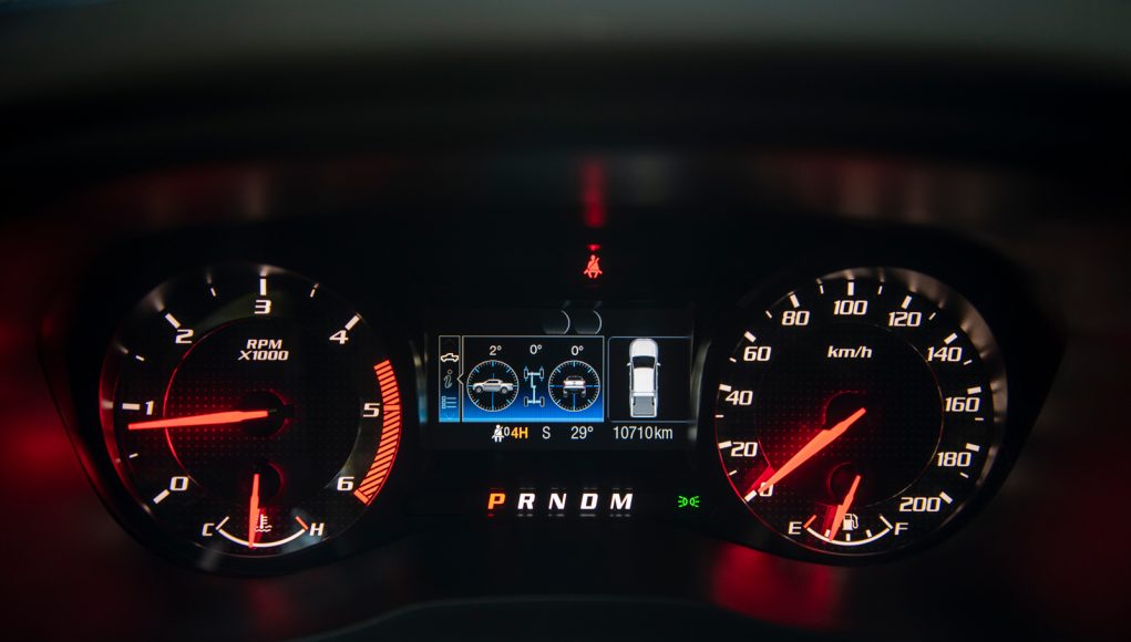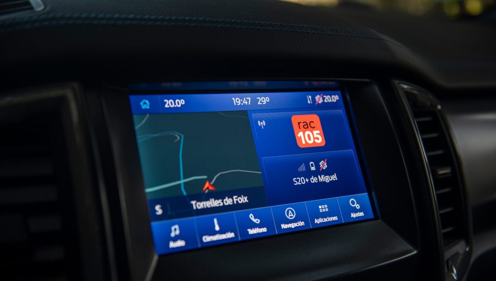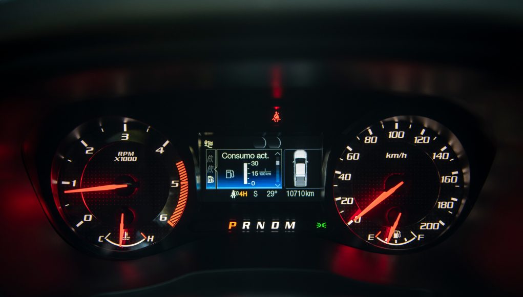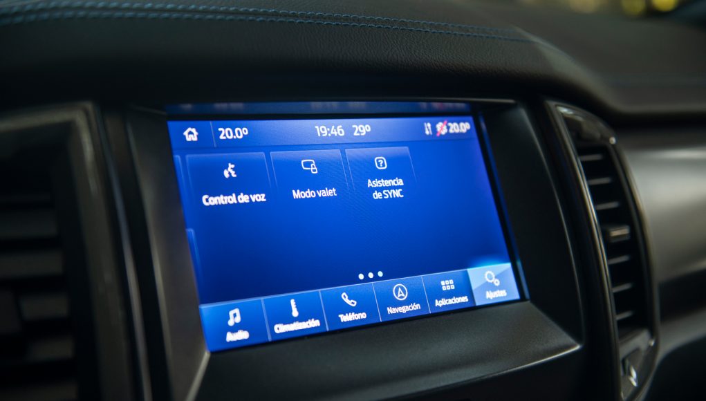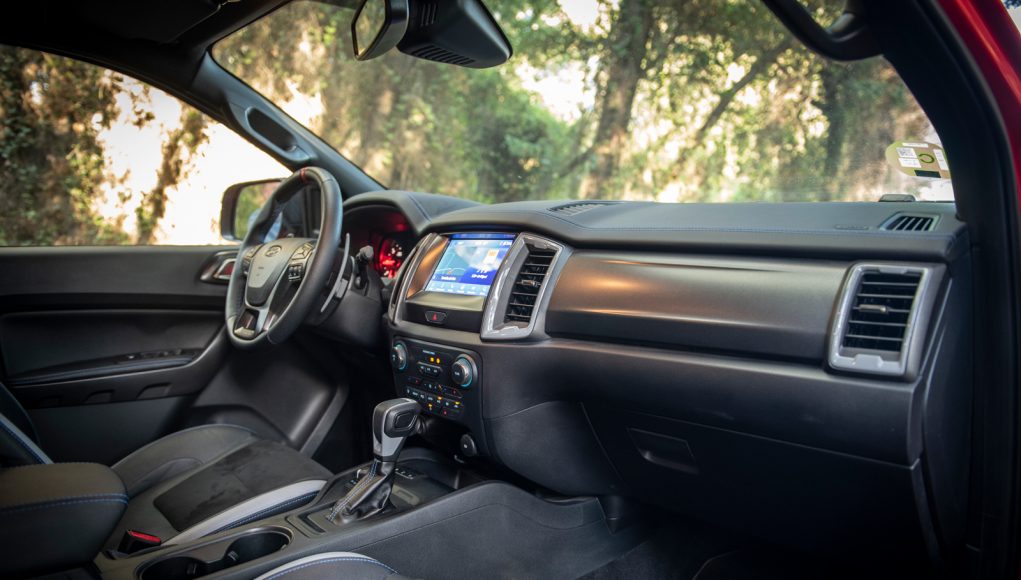 Tras el volante multifunción el cuadro de mandos está presido por dos esferas analógicas con una pantalla TFT a color en el centro donde se proyecta multitud de información. A su derecha encontramos una pantalla táctil de 8” con el sistema SYNC3 desde la que se controlan muchos parámetros de configuración del Raptor, así como todo el sistema de infoentretenimiento, siendo además compatible con Android Auto y Apple CarPlay.