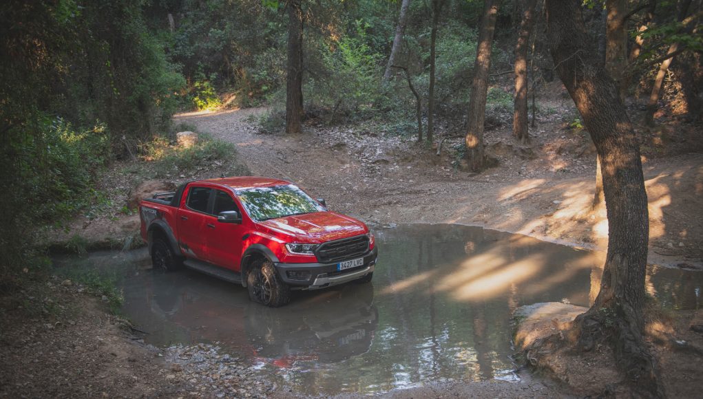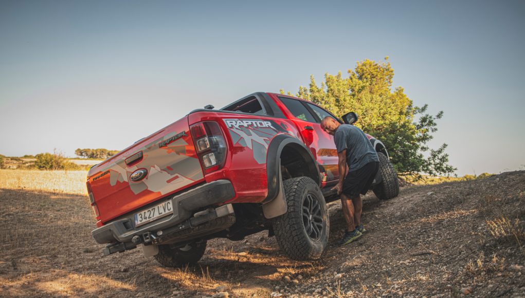 Sus cotas son bastante agresivas lo que te permite sortear también pendientes de tierra o incluso ron rocas incluso estando embarradas. Con un ángulo de ataque de 32, 5º de salida y ventral de 24º, contando con el bloque del diferencial trasero, reductora una altura libre de 283mm y los neumáticos BF Goodrich podrás hacer diabluras sin miedo a quedarte encallado, para ello, tan solo has de tener en cuenta la longitud del Raptor.