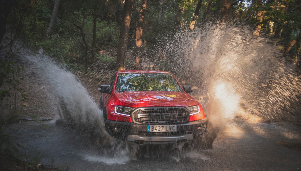 Ahora bien, entrar en una pista forestal, un camio embarrado, sortear un río o escalar rocas es algo que con el Range Raptor si podrás hacer, gracias claro está al selector de modos de conducción que permite escoger entre 6 diferentes; Barro, Rocas, Hierba/Gravilla, Baja, Normal y Sport, optimizado cada uno de ellos para diferentes escenarios, y siendo imprescindible seleccionar la tracción 4 o tracción 4 con reductora en alguno de ellos, mientras que la tracción trasera queda reservada para los modos normal, sport o baja, siendo este último el más divertido de todo, e ideal para hacer largos derrapajes en pistas forestales, ya que limita el uso de la electrónica.