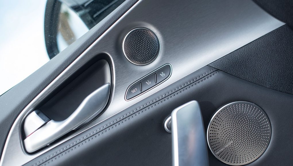 Para animar los largos viajes, queremos hacer mención especial al equipo de sonido Harman-Kardon cuya potencia de 720W y sus 15 altavoces y dos subwoofers, convierten al Stinger en una verdadera sala de audición rodante.