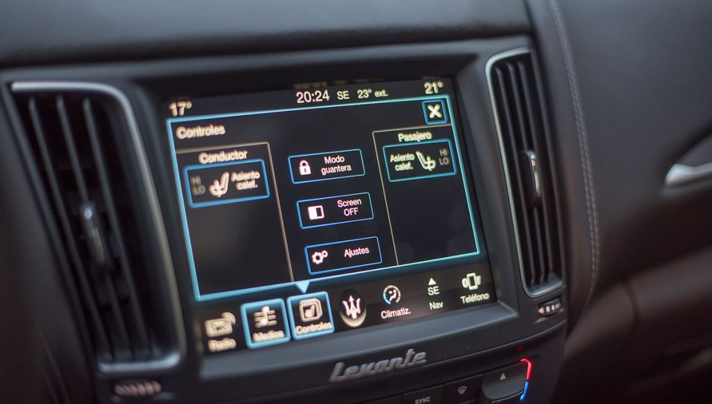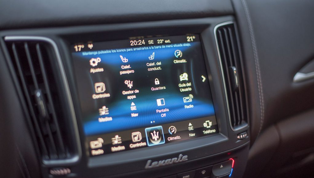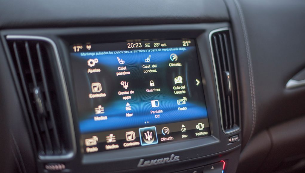 En el centro de la consola, encontramos una pantalla táctil de 8,4” desde la que se maneja todo el sistema de infoentretenimiento a la vez que el sistema de climatización denominada Maserati Touch Control Plus que además es compatible con Apple CarPlay & Google Android Auto.