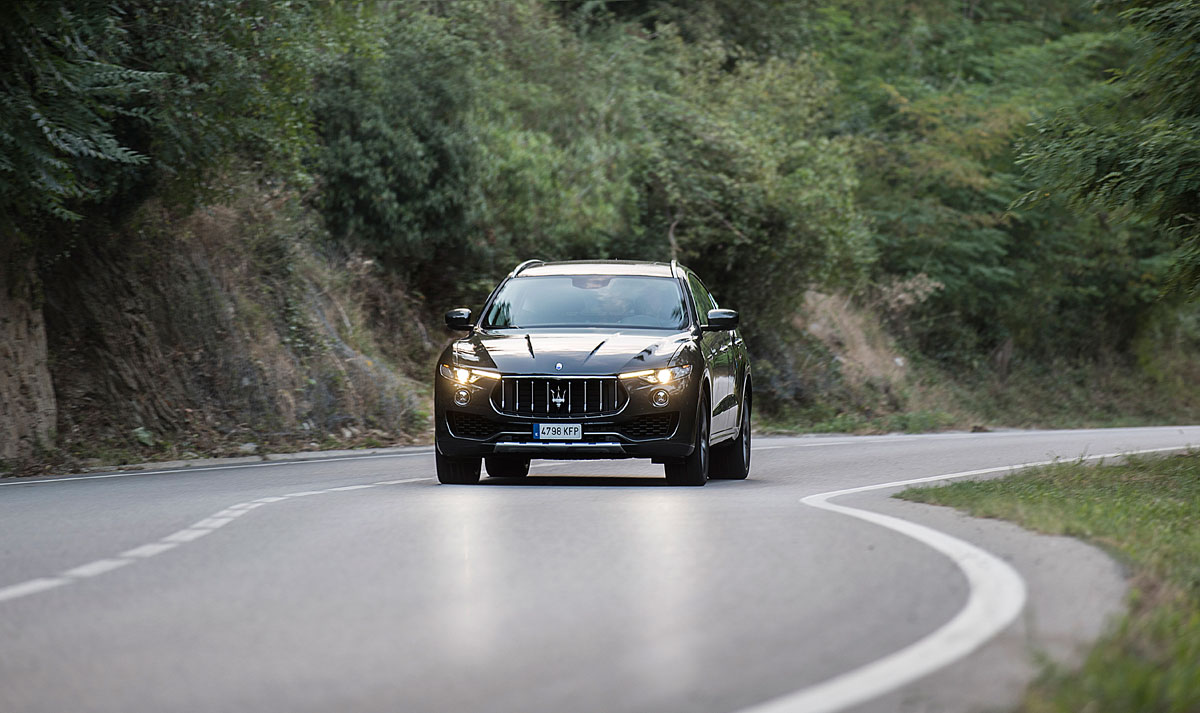 El esquema de suspensiones del Levante, así como su sistema de tracción Q4, hacen que este SUV a veces te haga olvidar que llevas entre manos, pues el comportamiento que ofrece en conducción deportiva nada tiene que envidiar al de un Ghibli del que hereda las suspensiones, o al de un Quattroporte. Si a esto le sumamos que el reparto de pesos de este SUV es de un 50/50 y que dispone de uno de los centros de gravedad más bajos de su segmento, enseguida nos damos cuenta de que no es tan solo un SUV que Maserati ha creado para tener un líder de ventas, sino que lleva el ADN deportivo de la marca lo que es una garantía en aras de premiar su carácter más deportivo.