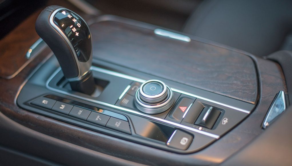 Junto al selector del cambio, en la parte izquierda disponemos de los botones con los que se accede de forma directa a la desconexión del control de tracción o bien, a los diferentes modos de conducción, I.C.E, Sport y Offroad y del mando giratorio y poco intuitivo desde el que se maneja el sistema de infoentretenimiento.