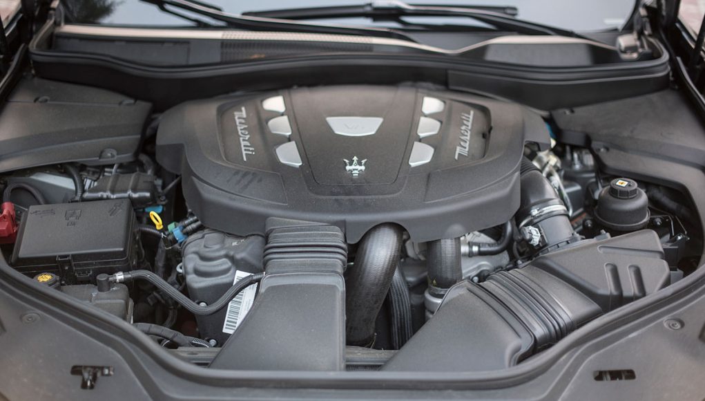 Bajo el capó delantero, encontramos al corazón que anima al Levante, un motor turbo diésel V6 de 3 litros que desarrolla una potencia de 275 CV y dispone de 600 Nm de par entre las 2.000 y las 2.600 rpm de origen VM Motori, que dispone de elementos mejorados como los colectores de escape en acero de un soplado del turbo específico. La perfecta asociación con una caja de cambios ZF de 8 velocidades hacen que podemos sacar un rendimiento óptimo a todo el conjunto mecánico, gracias a sus siete programas, entre los que encontramos uno denominado auto off road que permite al cambio interactuar sobre el ESP reconociendo el terreno por el que se circula.