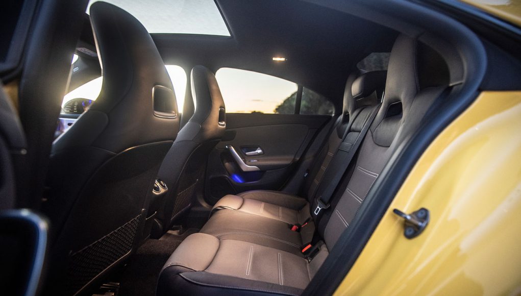 Optar por la belleza tiene sus inconvenientes. El techo bajo del CLA sigue siendo todo un desafío para personas de más de metro ochenta que quieran viajar en las plazas traseras. Mercedes asegura que hay tres milímetros más de altura hasta el techo y 1 mm más para las piernas pero mejoras son irrelevantes cuando hablamos de personas adultas. Tampoco se puede contar con la plaza central ya que el túnel de transmisión es muy alto y haría realmente incómodo viajar en el medio.