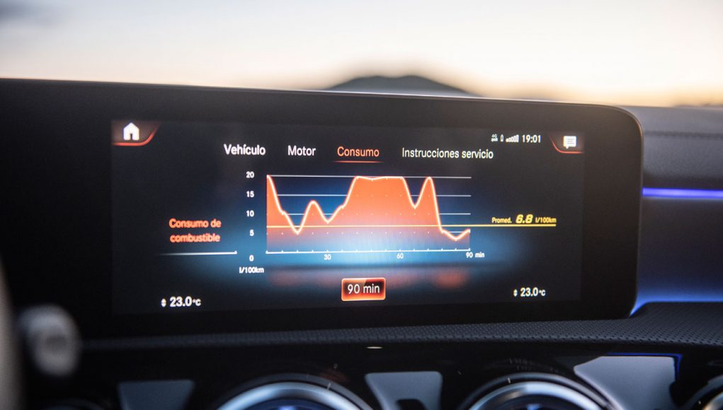 El comprador de un CLA podrá escoger entre motores que van desde los 136 CV del gasolina 180 Coupé desde 31 590 euros, hasta el AMG 45 S 4MATIC+ de 421 CV de cerca de 80 000 euros. El modelo probado es el CLA 220 d coupé con cambio automático 8G-DCT de 190 CV y 400 Nm de par máximo entre las 1 600 y 1 600 rpm. Alcanza los 244 km/h de velocidad punta, con una aceleración de 7,1 segundos y un consumo combinado (ciclo WLTP) de 4,8 litros a los cien. Dato que no conseguimos alcanzar durante la prueba, manteniendo un consumo cercano a los 6 litros.