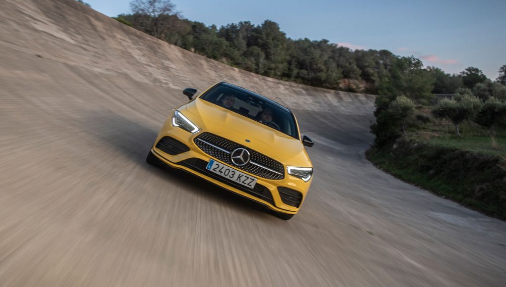 En España el CLA llega con el tren de rodaje de confort de altura rebajada, lo que supone una rebaja de 15 mm de su altura respecto al suelo. Puede parecer un detalle nimio pero esta proximidad con la carretera beneficia, y mucho, las sensaciones tras el volante. Los coupé deben responder a las expectativas deportivas que genera su carrocería, ofreciendo un plus de emoción y dinamismo que no tendrían otros segmentos. Este modelo consigue su objetivo gracias a un tarado de suspensión firme en tramos revirados sin llegar a ser duro, suficiente para superar los estragos de vías rotas. Además, Mercedes ha ensanchado las vías delanteras en 6,3 centímetros y las traseras en 5,5 centímetros para mejorar el paso por curva y su estabilidad. Es realmente fácil conducir este coche, sin complicaciones ni preocupaciones por reacciones inesperadas. Eso no quiere decir que estemos ante un modelo de tramo, tan solo que responde correctamente a ese entorno.