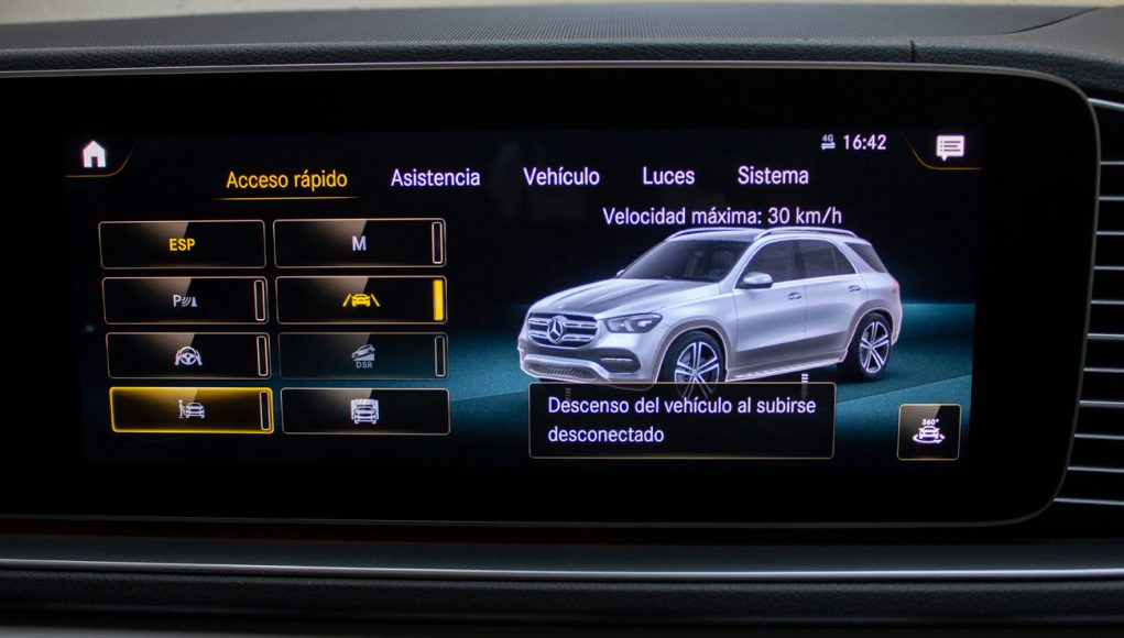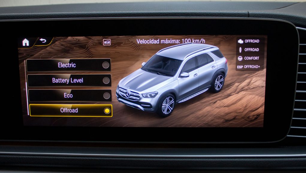 Para evitar quedarnos sin autonomía eléctrica es necesario jugar con los modos de conducción, presentes en este tipo de modelos y más si son premium. El GLE 350 de 4MATIC cuenta con cinco modos de conducción: Electric, Battery Level, Comfort, Eco y Sport. El primero de ellos se entiende por su nombre y nos permite circular en modo 100% eléctrico, de manera cauta, hasta un máximo de 160 km/h y con consumos en torno a los 26 kWh/100 km. En caso de pegar un acelerón repentino o, demandar más potencia a través del pedal derecho, el motor de combustión se pondría en marcha para cumplir con las expectativas. Sin embargo, su comportamiento y reacción son suaves y muy poco agresivas, transmitiendo calma al conductor y una paz como solo los eléctricos pueden otorgar.