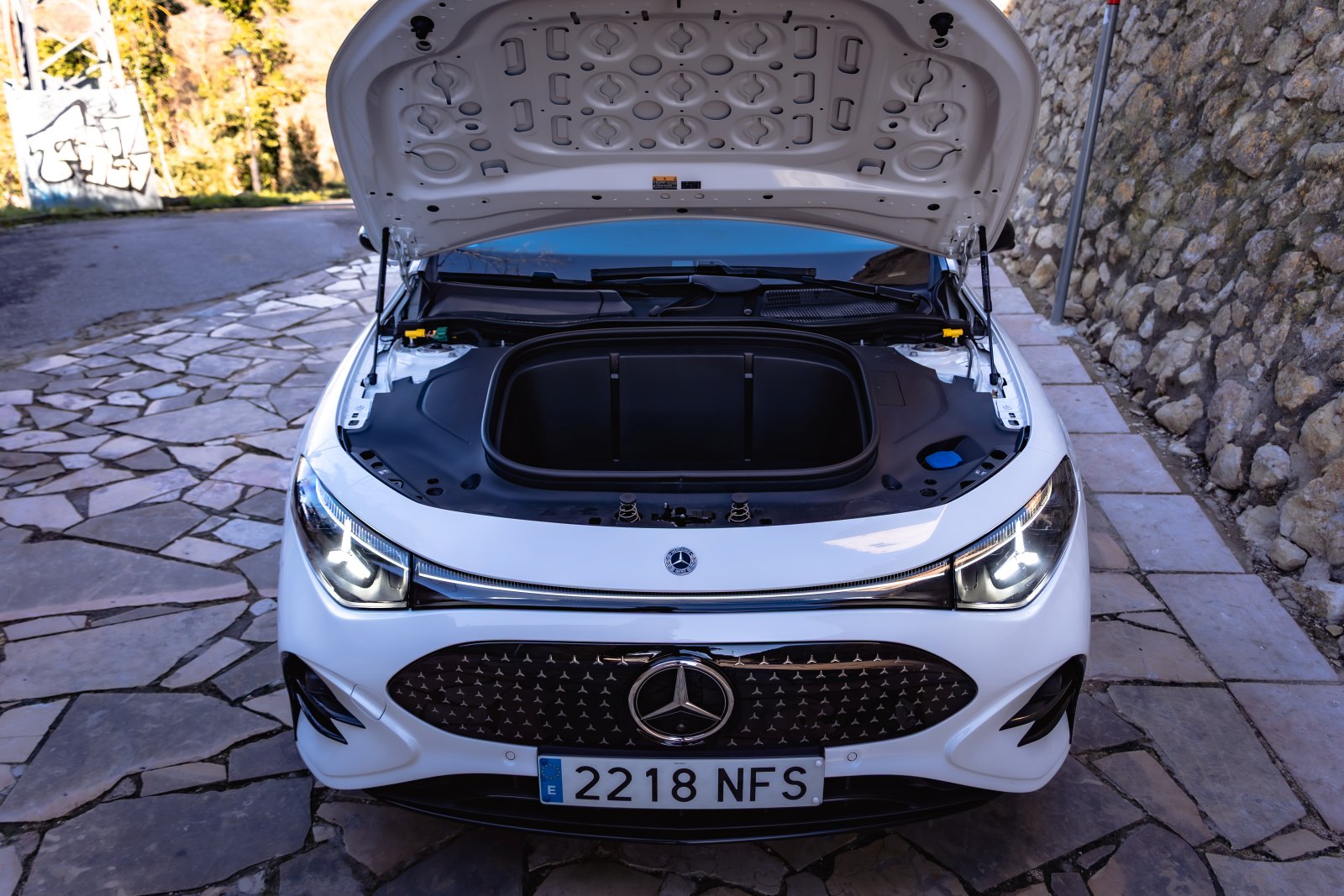 El pasajero central disfruta de un suelo plano, lo que mejora la comodidad, aunque la plaza es más estrecha. Por su parte el maletero trasero ofrece 405 litros, una cifra correcta sin ser brillante. Los respaldos se abaten en proporción 40/20/40, sin generar escalón, lo que facilita transportar objetos largos. Otra de las ventajas de este nuevo CLA es que en la parte delantera encontramos un frunk con una capacidad de 101 litros, ideal para llevar por ejemplo los cables de carga evitando así que vayan dando vueltas por el maletero.