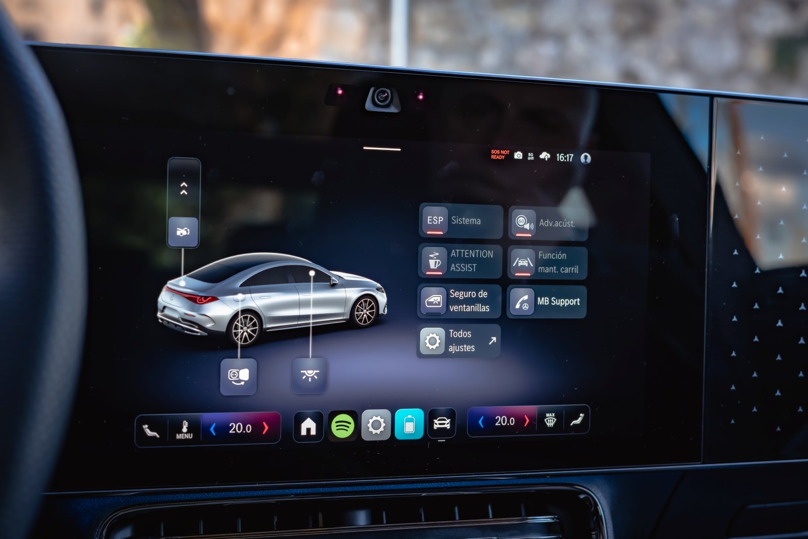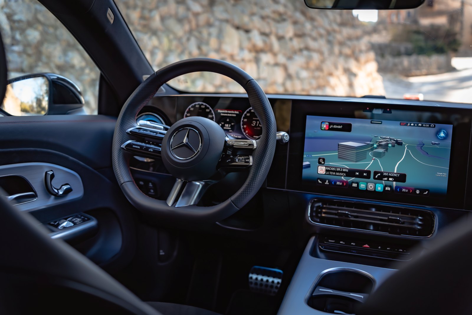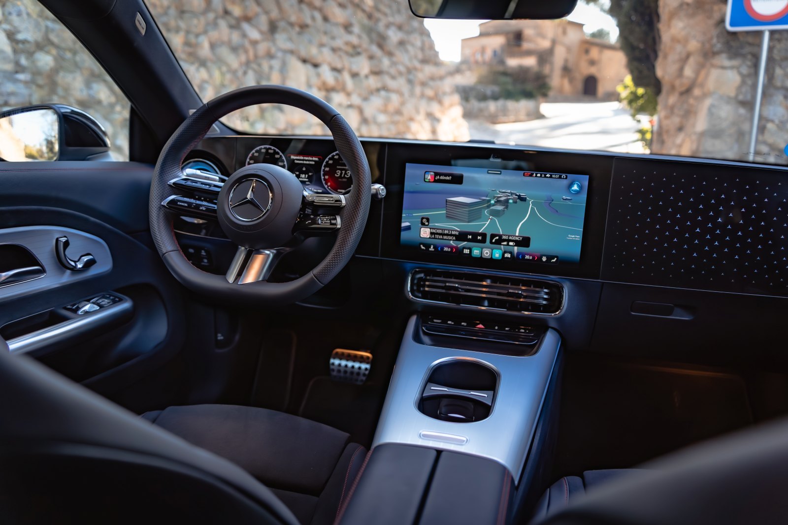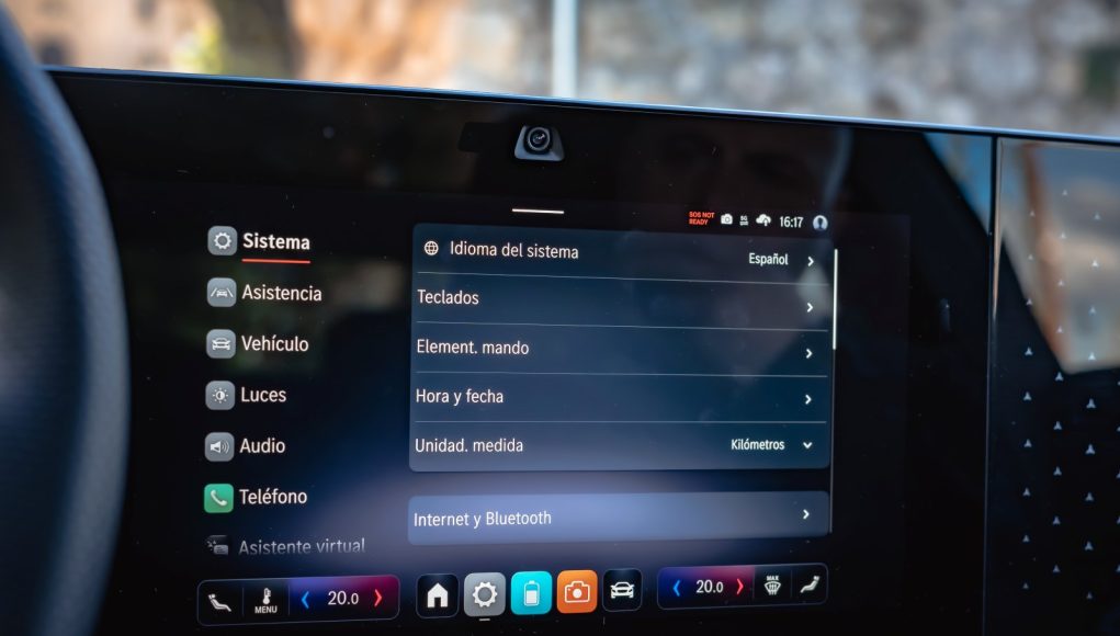 El sistema multimedia gira en torno a MB.OS, el nuevo sistema operativo de la marca, asociado a Google Gemini y ChatGPT 4.0. El comando “Hey Mercedes” funciona de forma muy natural, y el navegador basado en Google Maps gestiona rutas con información inteligente sobre puntos de carga compatibles con la arquitectura de 800V, algo que sin duda es muy útil, además de indicarte con que porcentaje de la batería llegarás a tu destino final.