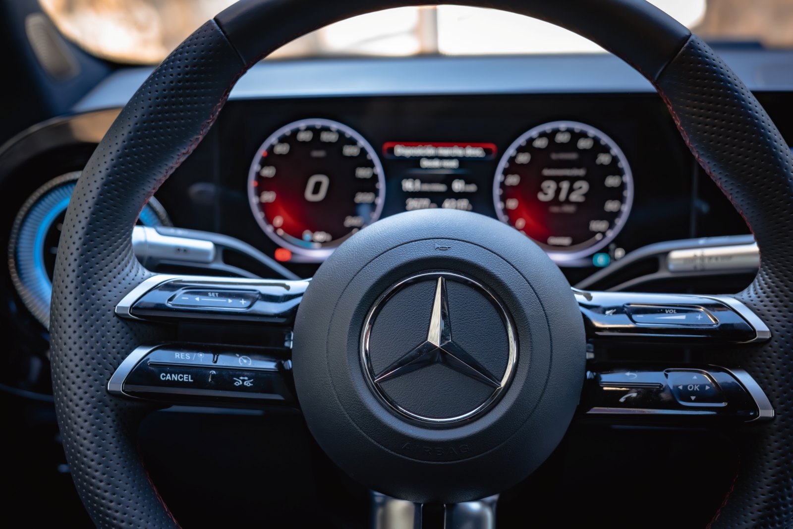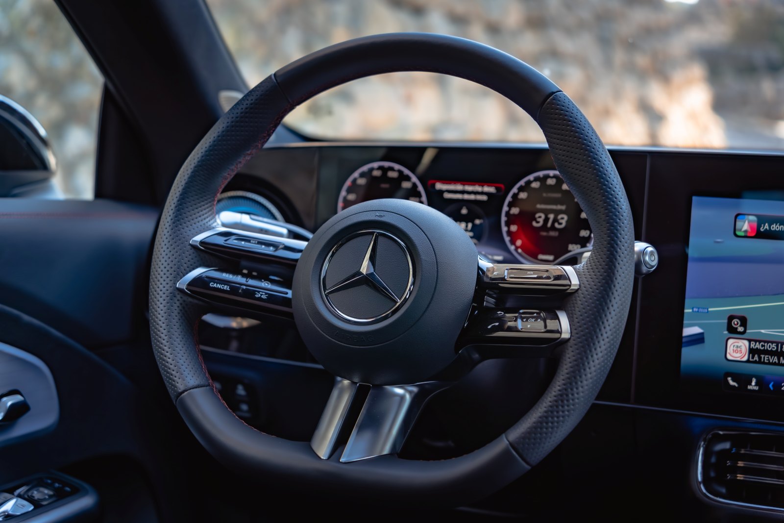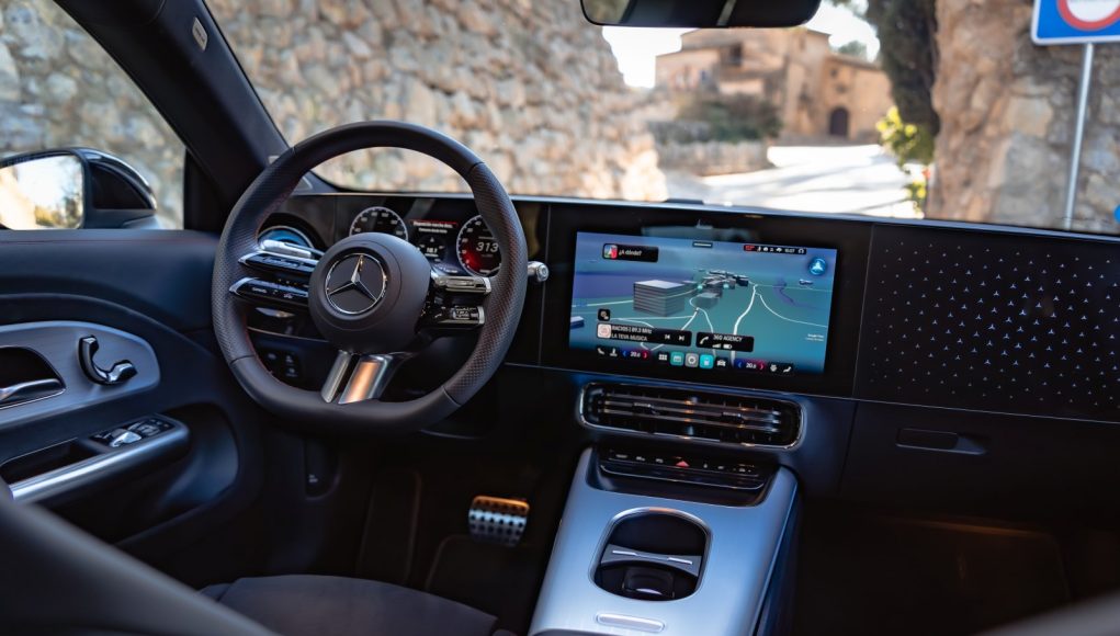 El habitáculo resulta inmediatamente familiar para cualquiera que haya conducido un Mercedes reciente donde la digitalización ha tomado una nueva dimensión y gana el total protagonismo. El cuadro de mandos está representado en una pantalla de 10” que como en cualquier Mercedes es totalmente configurable con diferentes vistas y proyección de información. En la consola central encontramos la segunda pantalla de 14” desde la que se controla todo el sistema de infoentretenimiento a través de la tecnología MBUX de la marca.