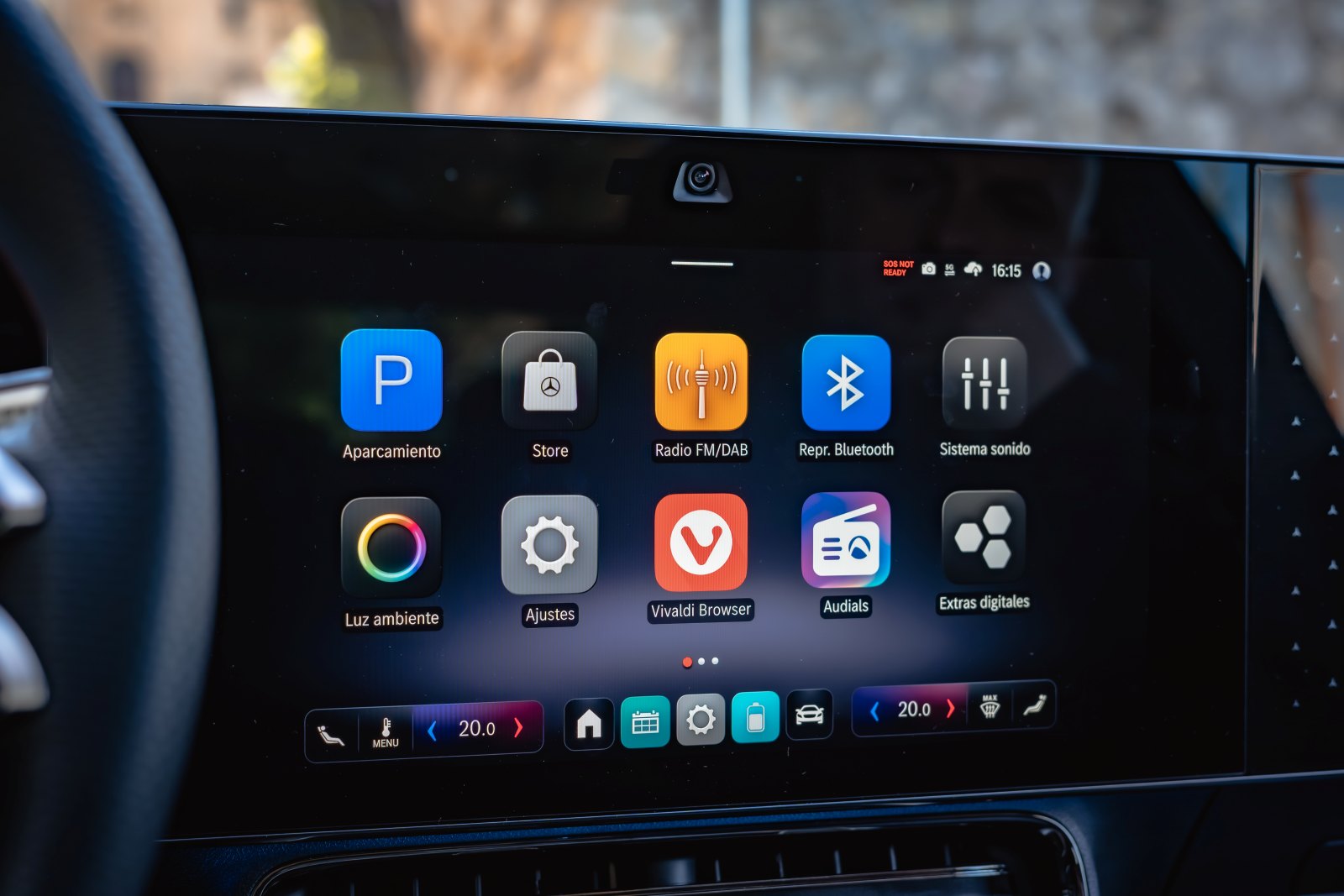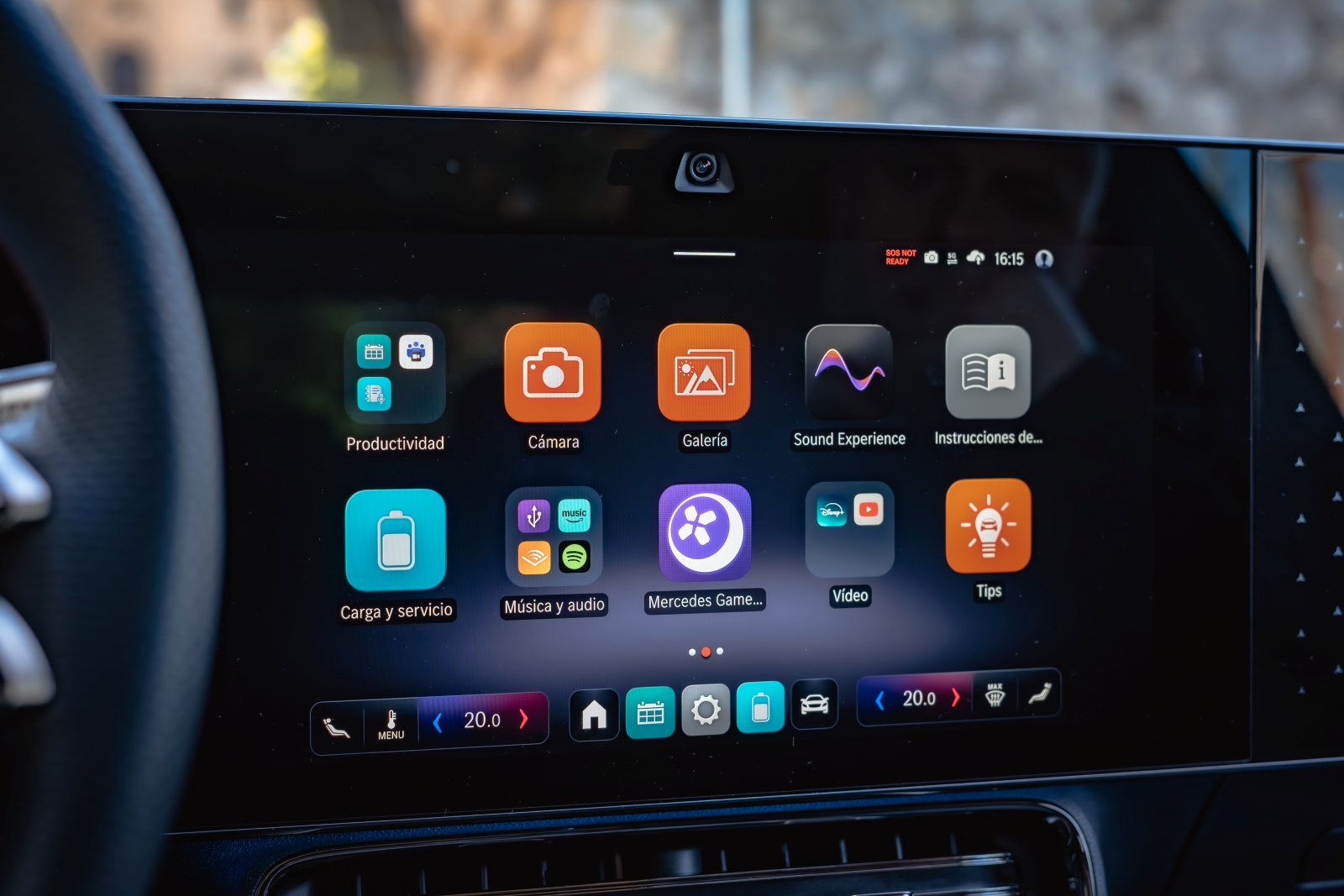 De forma opcional, frente al copiloto puede haber una tercer pantalla en la misma media con su propia conexión a bluetohht para disfrutar como pasajero. Imaginamos que, en un futuro no muy lejano, estas pantallas secundarias de alguna forma se lleven a la fila de asientos trasera, porque es dónde quizás tendrían más sentido para su uso.