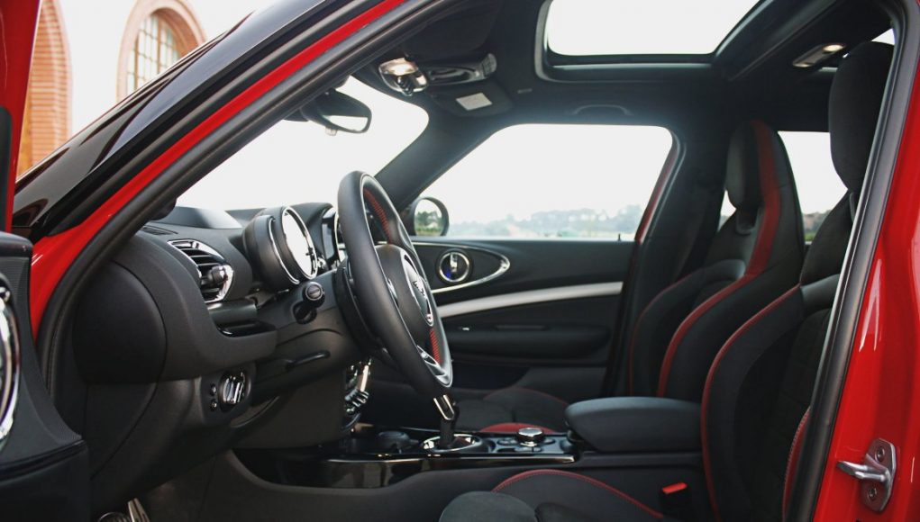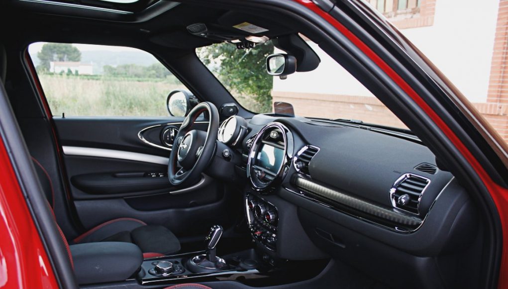 Como en todo los MINI, el habitáculo se presente con un diseño y una estética que podríamos decir es juvenil, en la que destacan infinidad de detalles que hacen el espacio del interior del MINI un lugar único. Este nuevo Clubman, ofrece un volante rediseñado, así como el indicador del nivel del combustible, nuevas molduras decorativas e incorpora un cargador inalámbrico para smartphones bajo el reposabrazos. En cuanto a las tapicerías encontramos el cuero Chester en color Malt Brown, Indigo Blue y Satellite Grey.