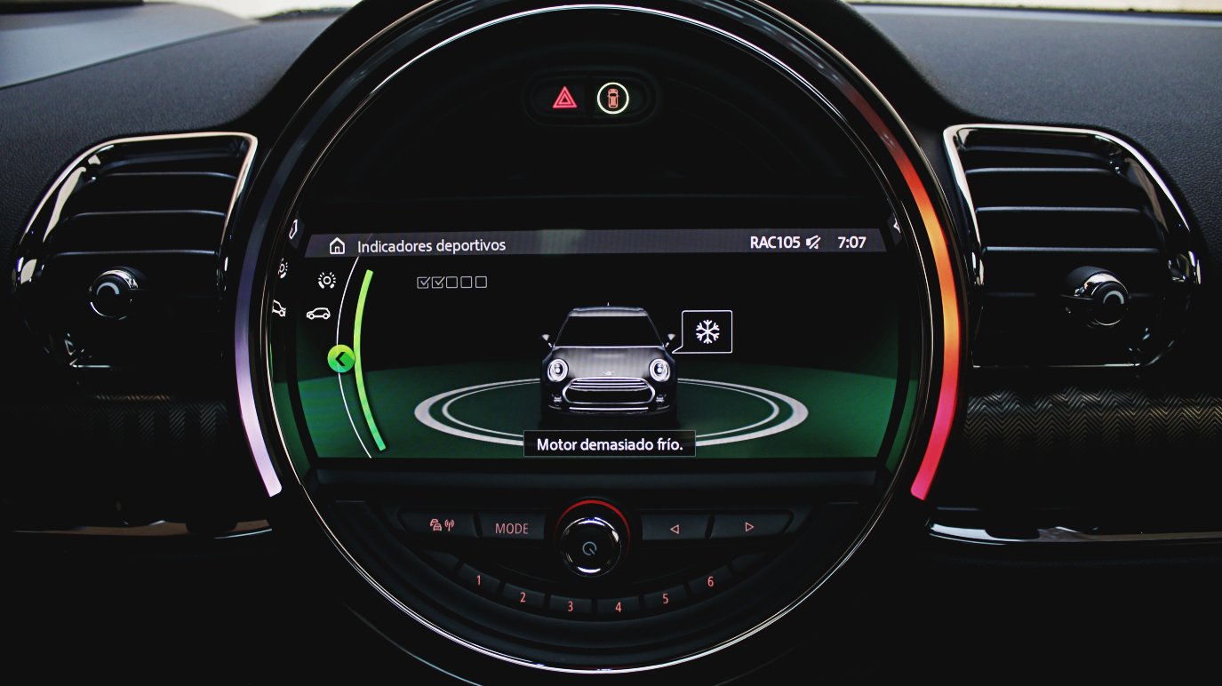 De serie, en la consola central encontramos una pantalla multimedia táctil de 6,6” que en opción puede ser de 8,8”, como la de nuestra unidad de pruebas que puede ser compatible además con el sistema Apple CarPlay y Android Auto y que cuenta con una importante actualización del sistema MINI Connected App.