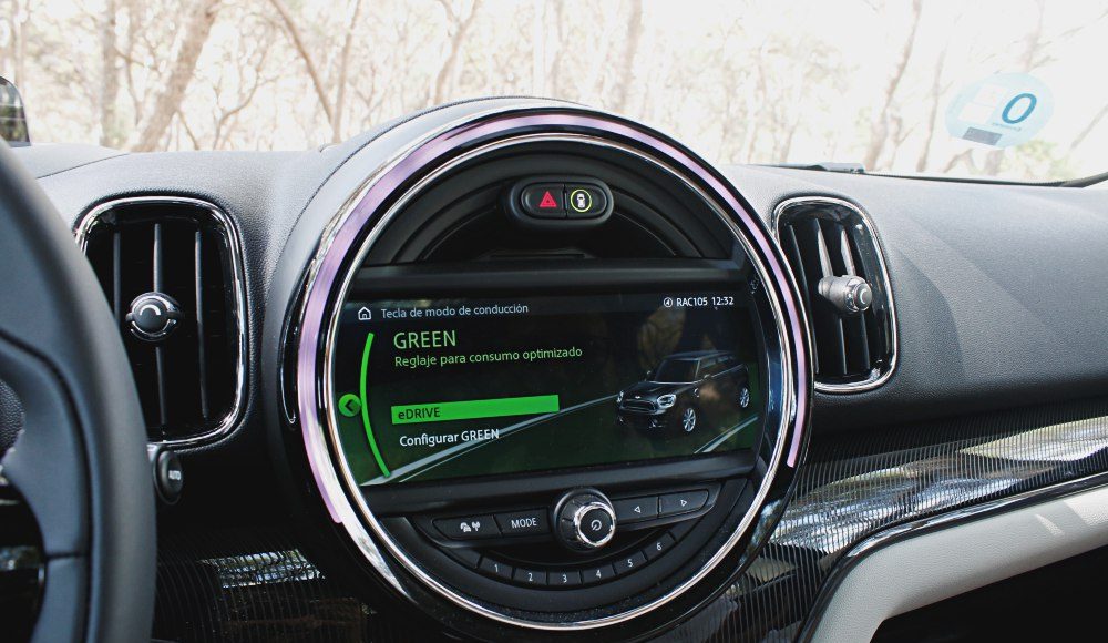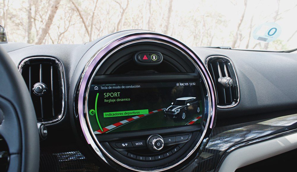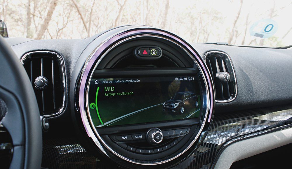 A éstos tres modos de gestión de ambos motores, encontramos como en cualquier MINI los tres modos típicos de conducción (Eco, Normal y Sport) que interfieren en la dirección, el cambio o la respuesta del acelerador.