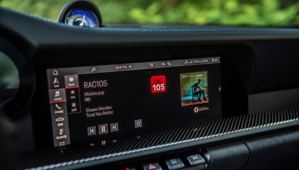 Nuestra unidad de pruebas lucía los asientos tipo backet en carbono, elemento que encontramos indispensable en un coche así, lo que bien merece pagar lo que valen aunque sea un elemento opcional, a la vez que el Paquete Club Sport, que es opcional, pero sin sobreprecio y que deja tras los asientos una jaula antivuelco que se encuentra atornillada a la carrocería, así como los cinturones de 6 puntos de anclaje para el lado del conductor, un extintor así como la preinstalación para el corte de la corriente en caso de accidente. Todos estos elementos le dan al habitáculo ese toque de cockpit de competición, donde nosotros además incluso, y a título personal si se pudiera, prescindiría hasta de la pantalla central, todo y que permite apagarla por si quieres evitar distracciones.