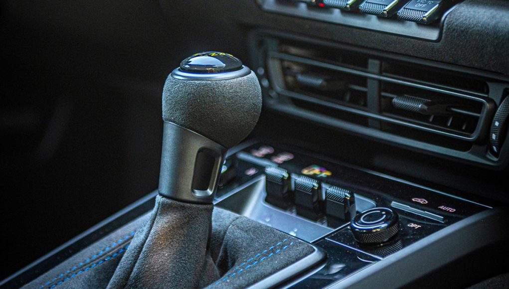 Bajo esta encontramos 5 pulsadores, entre ellos dos que desconectan de forma inmediata el control de tracción y el control de estabilidad. El selector del cambio PDK está en la posición más baja, tras los mandos del climatizador.