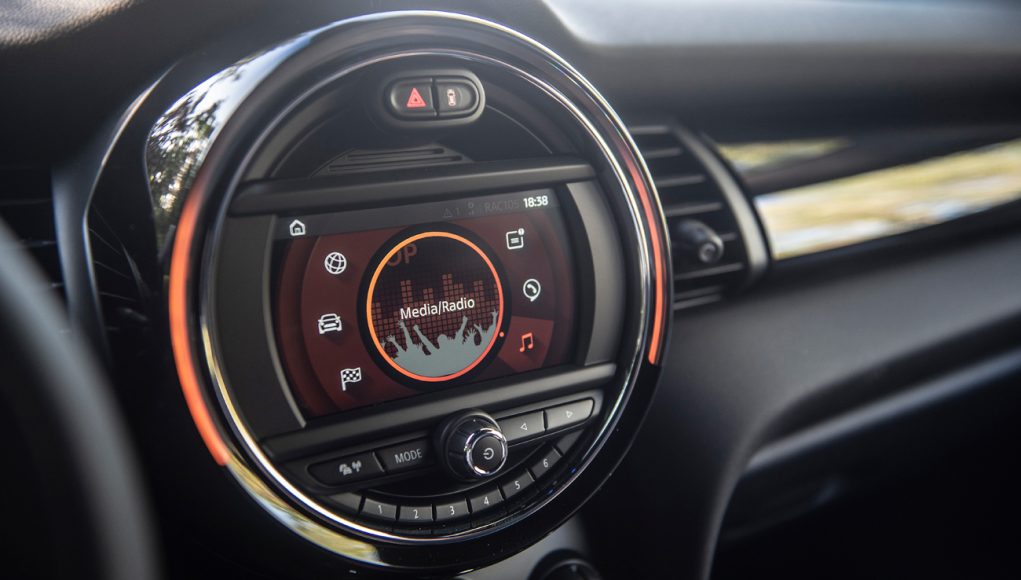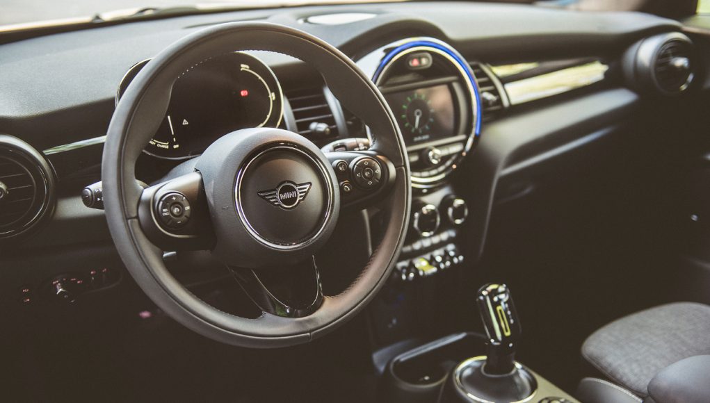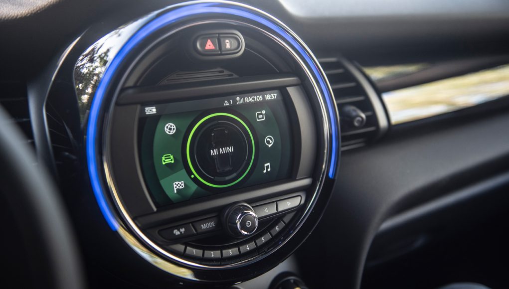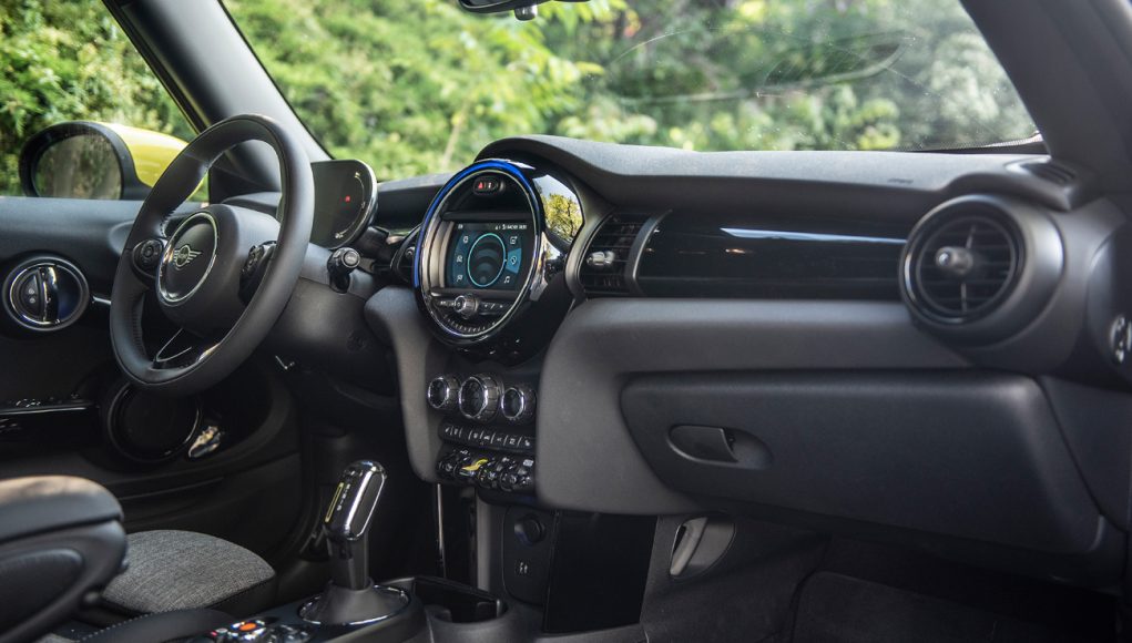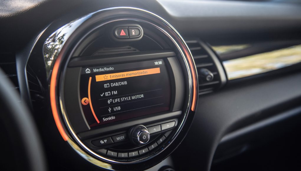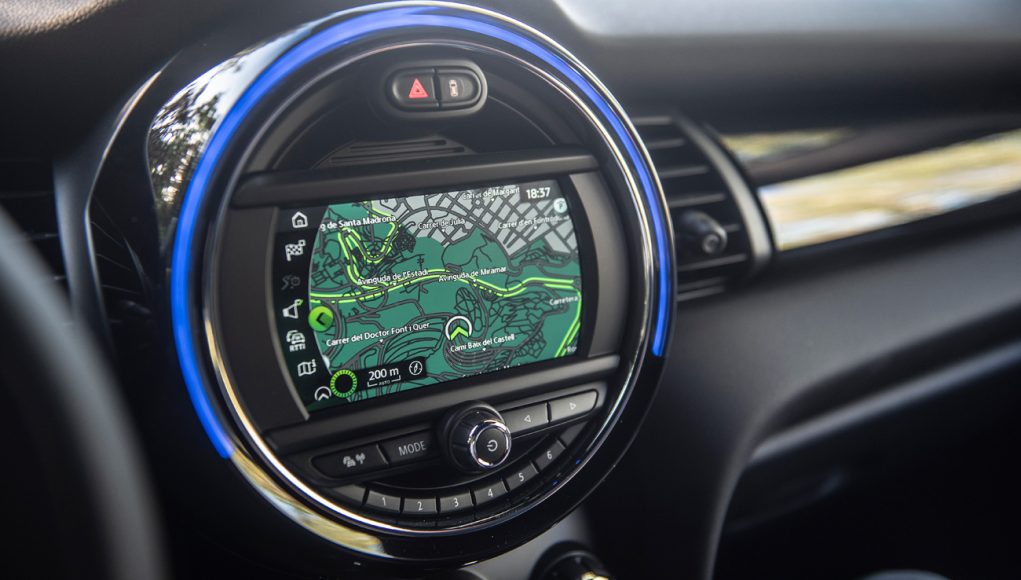 En el habitáculo se sigue la misma tónica que en el exterior, así que básicamente la principal diferencia la encontramos en el panel de instrumentos que en esta versión es 100% digital a través de una pantalla de 5,5 pulgadas, en la que además de la velocidad, podemos ver también el nivel de carga de la batería, así como un medidor de potencia y uso. La pantalla de la consola central que puede ser de 6,5 u 8,8” dispone básicamente el sistema de infoentretenimiento, aunque aquí se añaden algunas grafías propias del MINI electric. En el selector del cambio, así como en el original botón de encendido del MINI encontramos el mismo color amarillo Flúor de los detalles del exterior que identifican a esta versión.