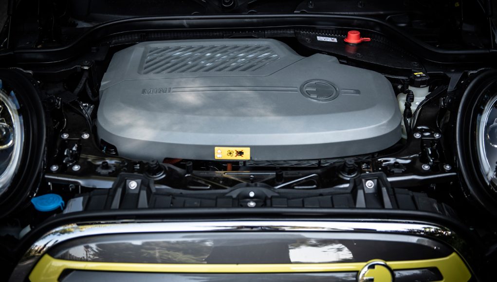 Bajo el capó delantero encontramos al motor eléctrico síncrono de 135 kW o lo que es lo mismo, 184CV y 270 Nm de par, cifra que ayuda a mover a este compacto urbano con muchísima soltura, estando muy cerca de los 192CV del MINI Cooper S que disfruta de 192CV. Este propulsor es el mismo utilizado en el BMW i3, pero optimizado para este MINI, que recibe toda su potencia al tren delantero.