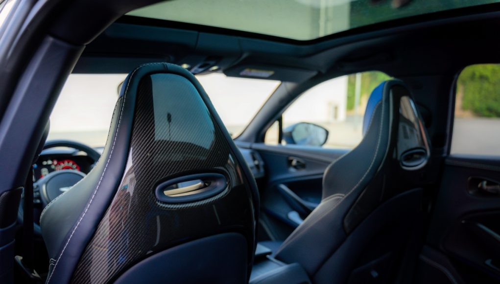 Si en el exterior Aston Martin ha querido mostrar el talante deportivo llevado al extremo, en el habitáculo encontramos la misma fórmula. Tras abrir la puerta lo primero que nos llama la atención solos asientos Sport que ahora son de serie, mientras que los Confort están disponible de forma opcional, pero sin coste. Estos asientos disponen de 16 reglajes, con los que fácil es encontrar una postura de conducción cómoda, así como están ventilados y calefactados para ser agradables en cualquiera de las cuatro estaciones.