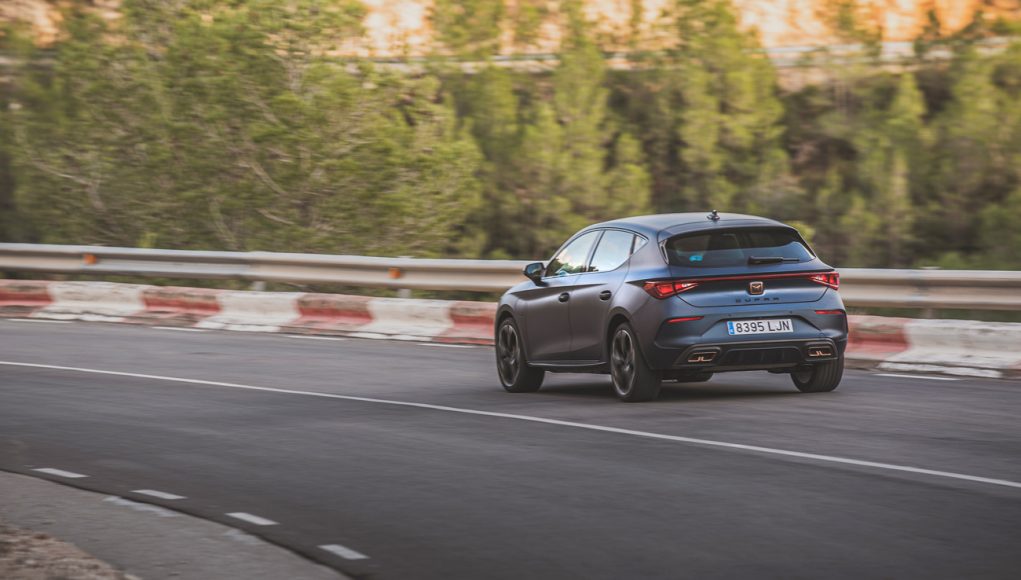Las prestaciones son acordes a un compacto de estilo deportivo, acelerando de 0 a 100 km/h en 6,7 segundos y lanzándose cómodamente hasta los 225 km/h. Para que os hagáis una idea, el CUPRA León 2.0 TSI de 245CV, acelera de 0 a 100 en 6,4 segundos, mientras que su velocidad punta es de 250 km/h. Aquí, está claro que el peso de 1.485 kg, frente a los 1.671 kg de la versión híbrida son los que restan esas décimas y velocidad punta.