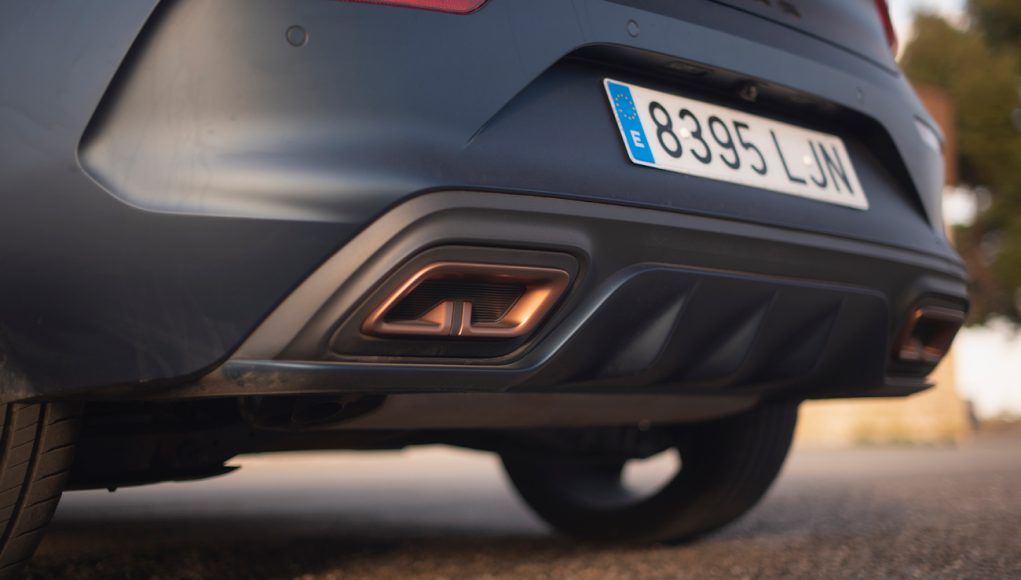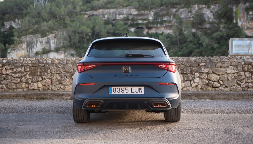 La zaga, es realmente preciosa, quizás lo que más no ha gustado de este coche en lo que a diseño se refiere. Los pilotos unidos por una franja ofrecen una firma lumínica que parece dar más anchura el León. El logo de CUPRA toma gran protagonismo, de la misma manera que el difusor y las dobles salidas de escape enmarcadas en color cobrizo. Nuestro León, lucía la espectacular pintura Azul Petro Mate, que junto a todos los elementos anteriormente expuestos deja un marcado estilo racing de todo el conjunto.