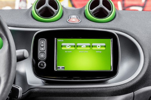Dentro del habitáculo encontramos la misma atmósfera, que, en cualquier Smart, donde la calidad de los materiales es excelente y la ergonomía está muy presente. Tan solo han sustituido el pequeño reloj del cuenta vueltas por uno nuevo que nos indica el nivel de carga de la batería, así como la potencia que estamos utilizando.