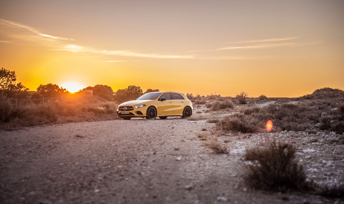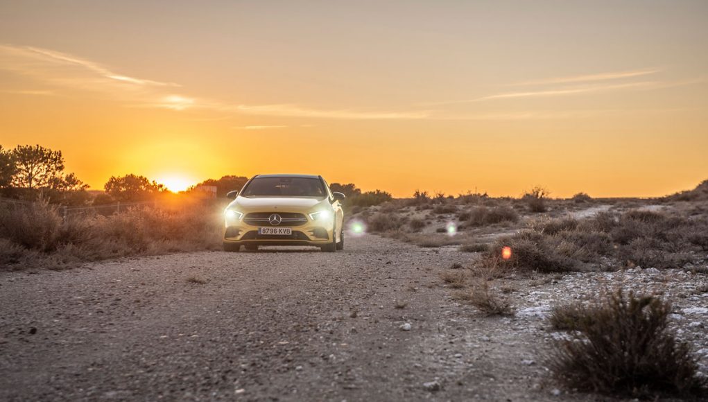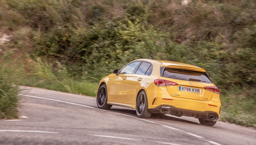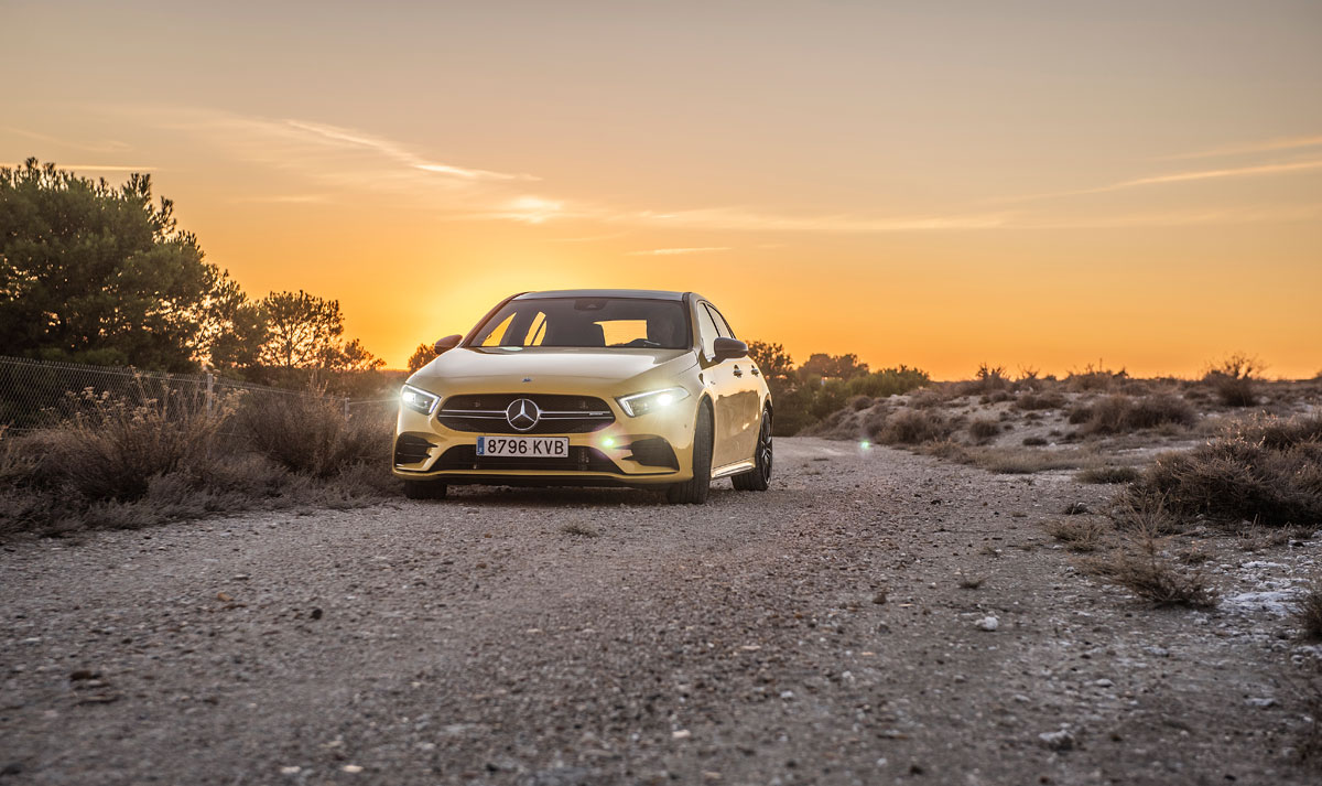 Si tiene tan pocos cambios la pregunta es justificada: ¿Por qué cuesta lo que cuesta? El argumentario hot hatch nunca se ha quedado en la superficie, tampoco en este caso. Las razones de peso del AMG A 35 se encuentran bajo el capó y en sus reacciones. Así que arrancamos y nos dejamos llevar por las sensaciones, para empezar su sonido rumoroso y grave que, sorprendentemente, no recurre a los altavoces para ser falseado. No es nada escandaloso pero visto lo visto y teniendo en cuenta lo poco que suenan los deportivos últimamente… no está mal.