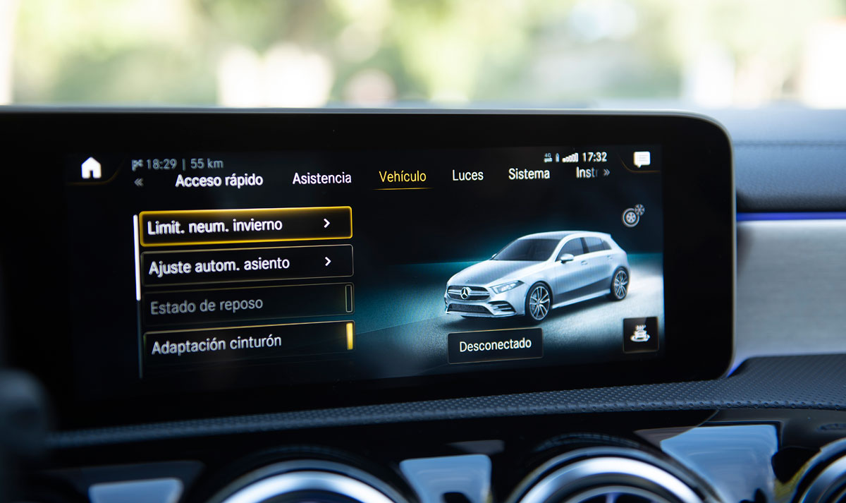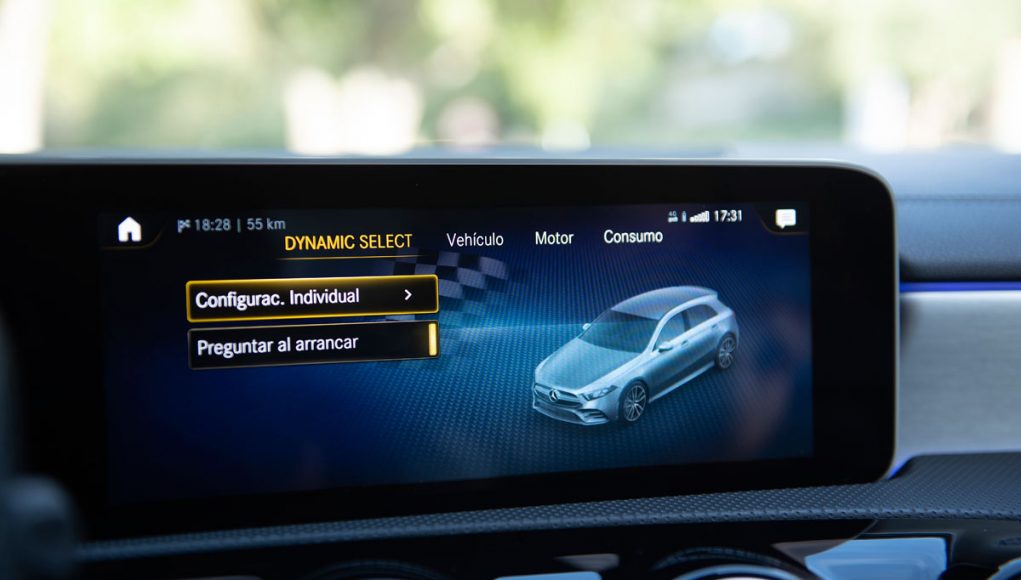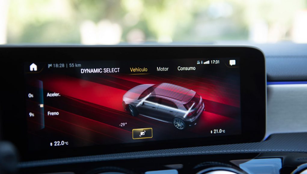 Los primeros kilómetros por ciudad y vías algo más rápidas nos confirman que estamos ante una versión mucho más light que el AMG A 45 que recordábamos. La opción de la suspensión adaptativa (1.450 euros) es 100% recomendable si queremos notar una diferencia sustancial entre modos de conducción: Sport, Sport+, Normal, Slippery e Individual. La suspensión de serie, por su parte, es bastante firme y cumplidora en tramos de exigencia deportiva pero algo dura frente a los típicos baches de las ciudades.
