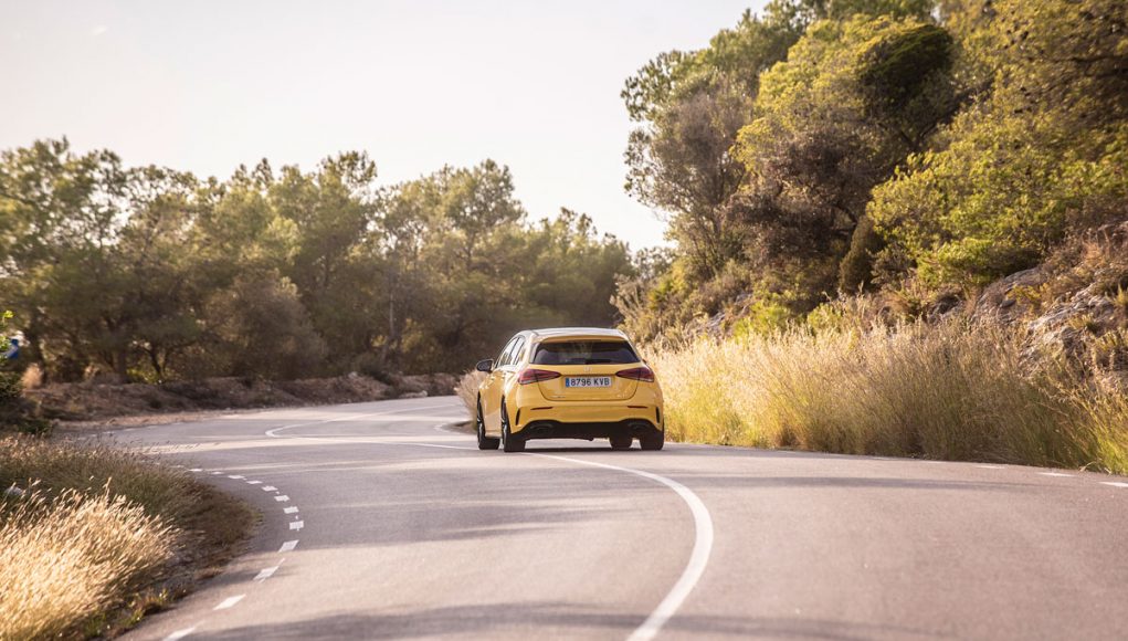 Dejamos atrás las autopistas y autovías, para eso están los coches generalistas. El AMG A 35 4MATIC merece ser probado en su hábitat natural, un tramo del icónico Rally Costa Brava. Enlazamos las primeras curvas así que activamos el modo Sport + y el sonido de escape adquiere más protagonismo, nos pone en alerta. El cambio automático de doble embrague se ha comportado excelentemente hasta este punto, en el que es necesario tomar el control de las levas tras el volante para poder estirar las marchas a tu gusto.