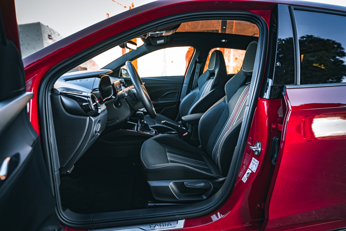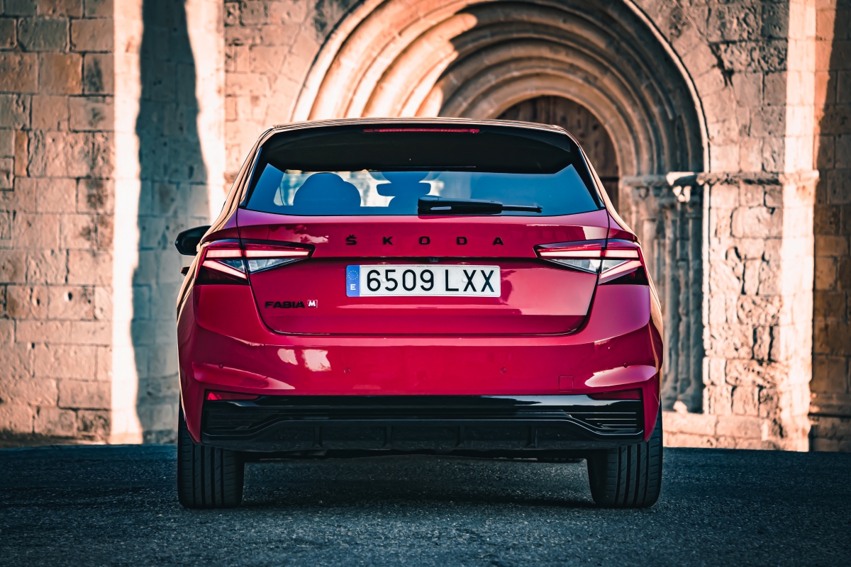 En el exterior del Fabia Monte Carlo, encontramos que el color negro presenta esa distinción, color que podemos ver en los retrovisores, en la parrilla frontal o los faldones ubicados en la parte inferior del coche. En la vista lateral, destacan las llantas deportivas de 17”, calzadas con unos neumáticos en medida 215/45/17, así como en la zaga un difusor que esconde a la salida del escape y un alerón que se prolonga en el techo.