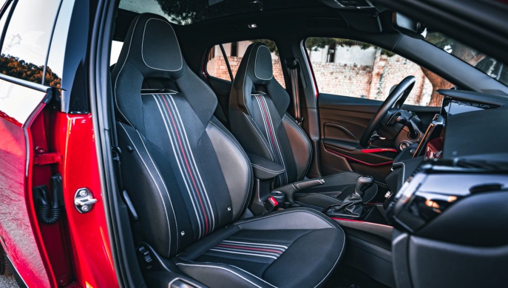 En el habitáculo se replican estos detalles, que podemos ver a primera vista en los baquets tapizados en negro y con decoración exclusiva, que por cierto, además de ser muy cómodos sujetan el cuerpo a la perfección, así como en el volante de piel achatado o los detalles en rojo de las puertas o el salpicadero.