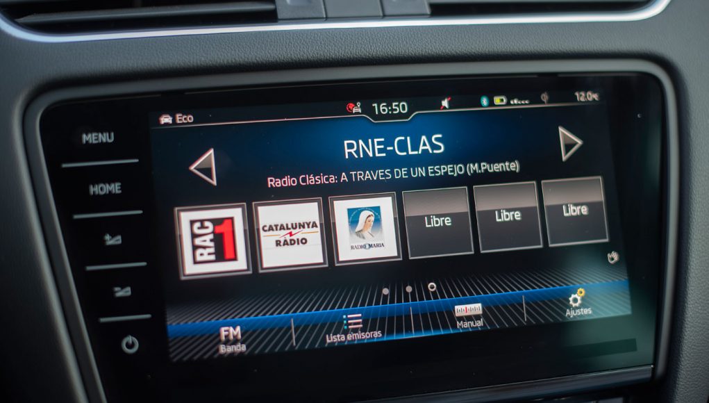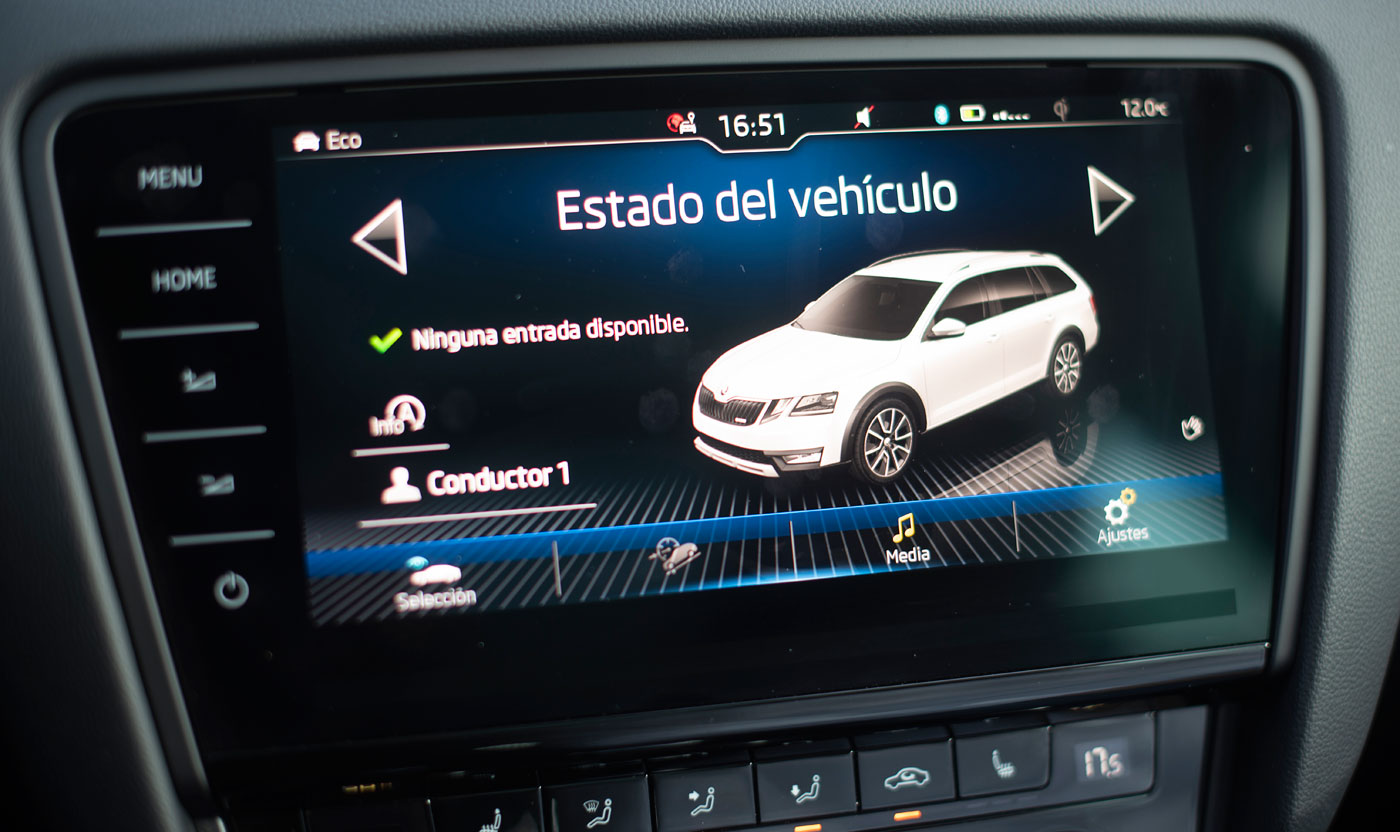 Las diferencias en cuanto al habitáculo residen, básicamente, en las insignias decorativas que lo reconocen como Scout. Una de las novedades de este restyling fueron los sistemas multimedia y en nuestra unidad contábamos con el tope de gama Columbus, que se gestiona a través de una pantalla de 9,2 pulgadas frente a las de 8 pulgadas de sistemas inferiores (Bolero y Amundsen). Esta pantalla de alta resolución puede ser compatible con los sistemas CarPlay y Android Auto pero ha sustituido la botonería habitual por un sistema 100% táctil, algo que obliga a apartar la vista de la carretera.