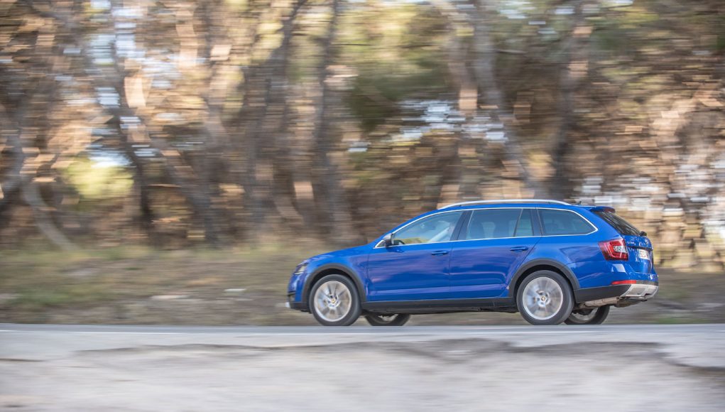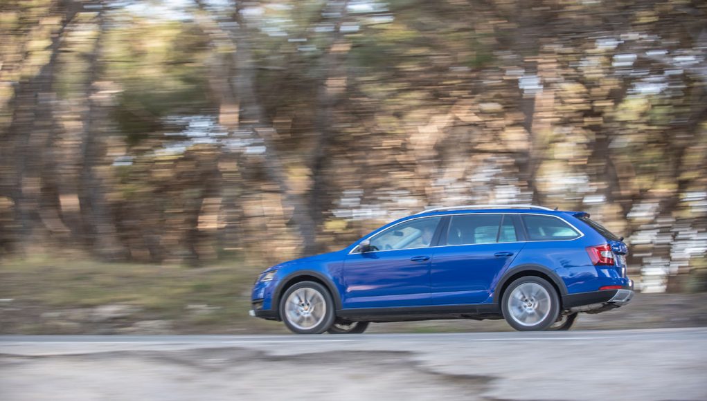 Dinámicamente estamos ante diferencias apenas perceptibles respecto al Octavia Combi, primando el confort por delante de otros aspectos como la deportividad. Es un vehículo familiar que debe cumplir en vías rápidas y en tramos no asfaltados. No se trata de un todoterreno, ni mucho menos, pero salvará zonas complicadas gracias a su mayor altura al suelo, las protecciones de plástico y un modo Off-Road que regula la acción del motor, suspensiones y sistema de tracción.