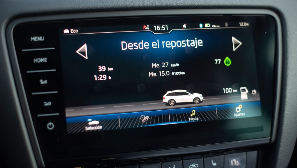 La unidad probada monta el bloque gasolina 1.8 TSI de 180 CV junto al reconocido cambio automático DSG de 6 velocidades. Si bien es cierto que el grupo VAG ha avanzado mucho en cuanto a transmisiones, el DSG sigue ofreciendo una fiabilidad excelente y un paso por marcha más que suficiente para el uso del Skoda Octavia Scout. El resto de gama de motorizaciones se reduce a dos diésel 2.0 TDI de 150 CV y 184 CV pero tras probar la opción gasolina solo nos pensaríamos el de mayor potencia, descartando el de menor empuje.