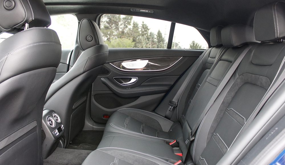 Para la parte trasera del AMG GT, Mercedes ofrece 3 configuraciones diferentes, siendo claro está la de dos plazas la más radical de todas, y la que se ofrece de serie. Opcionalmente, es posible contar con unos asientos configurados para tras plazas, o bien, otra configuración para dos plazas que podrá disfrutar de una pantalla multimedia, así como de portavasos refrigerado y cargador por inducción para smartphones.